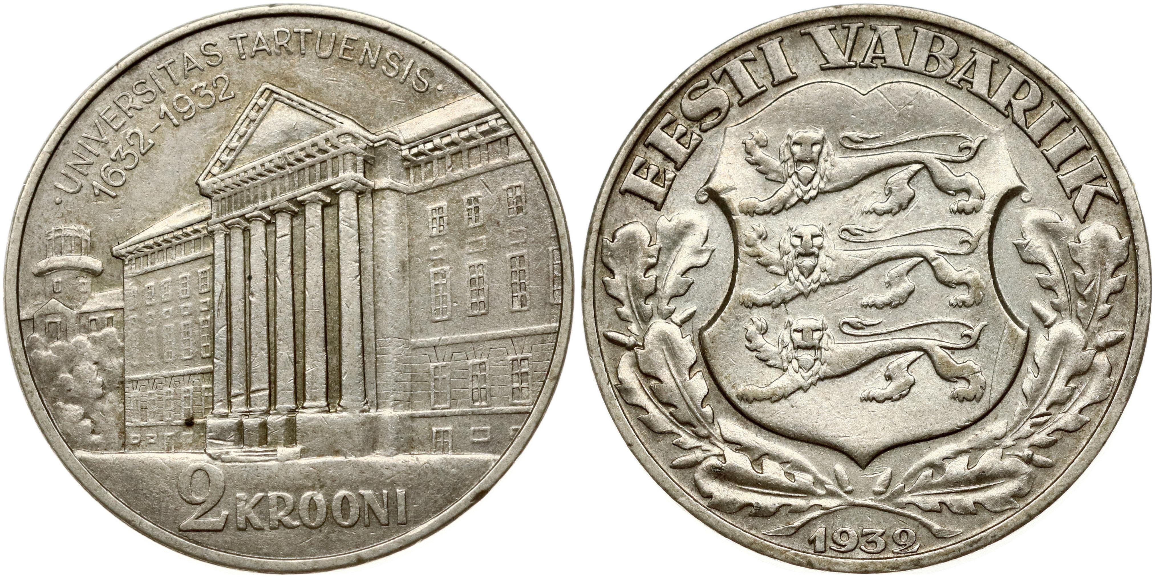 Estonia 2 Krooni 1932 University of Tartu. Tercentenary - University of Tartu. Silver 12.01g. KM-13, Kaupo Laan-25