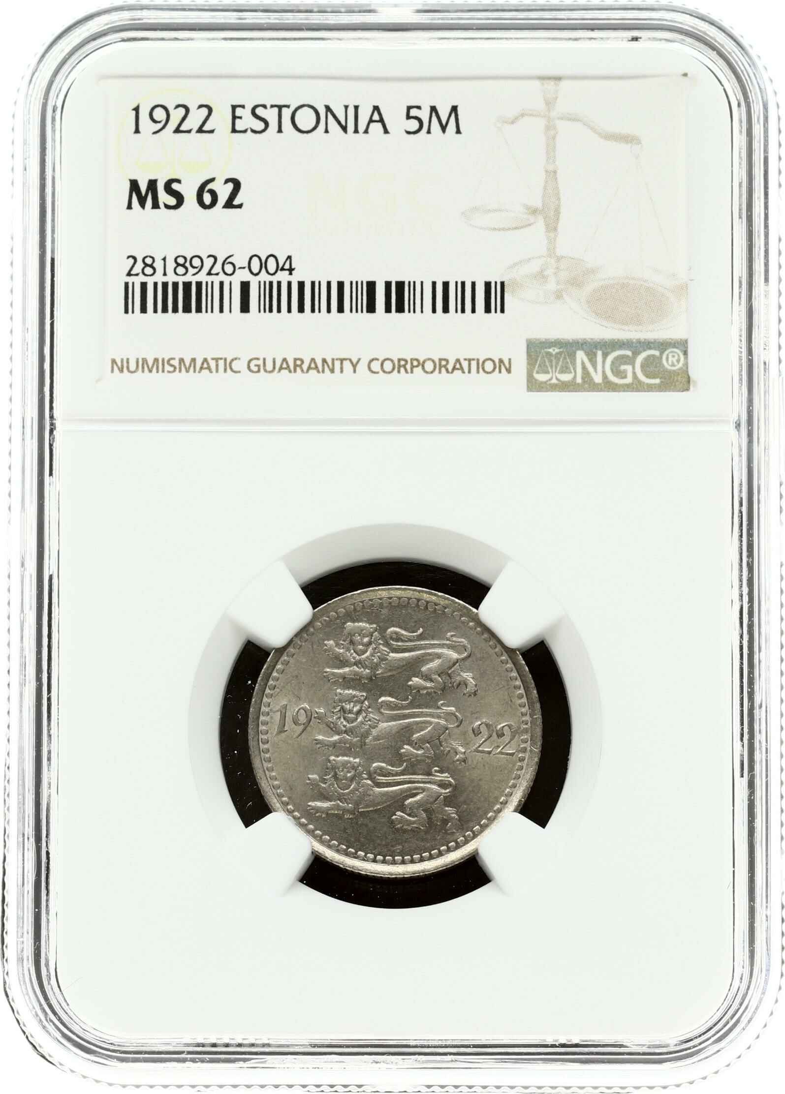 Estonia 5 Marka 1922 NGC MS 62