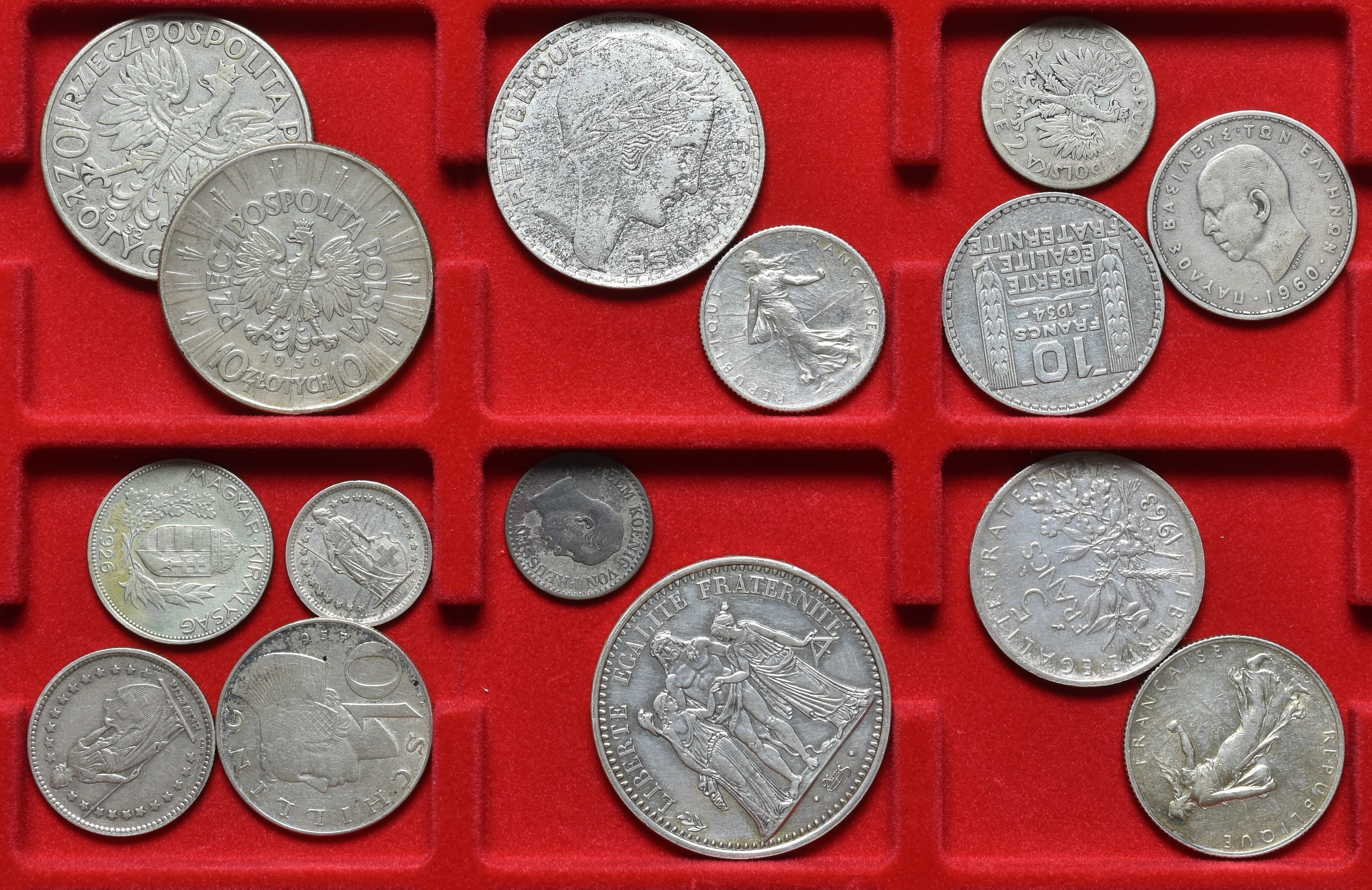 Ciekawy zestaw starych europejskich srebrnych monet.