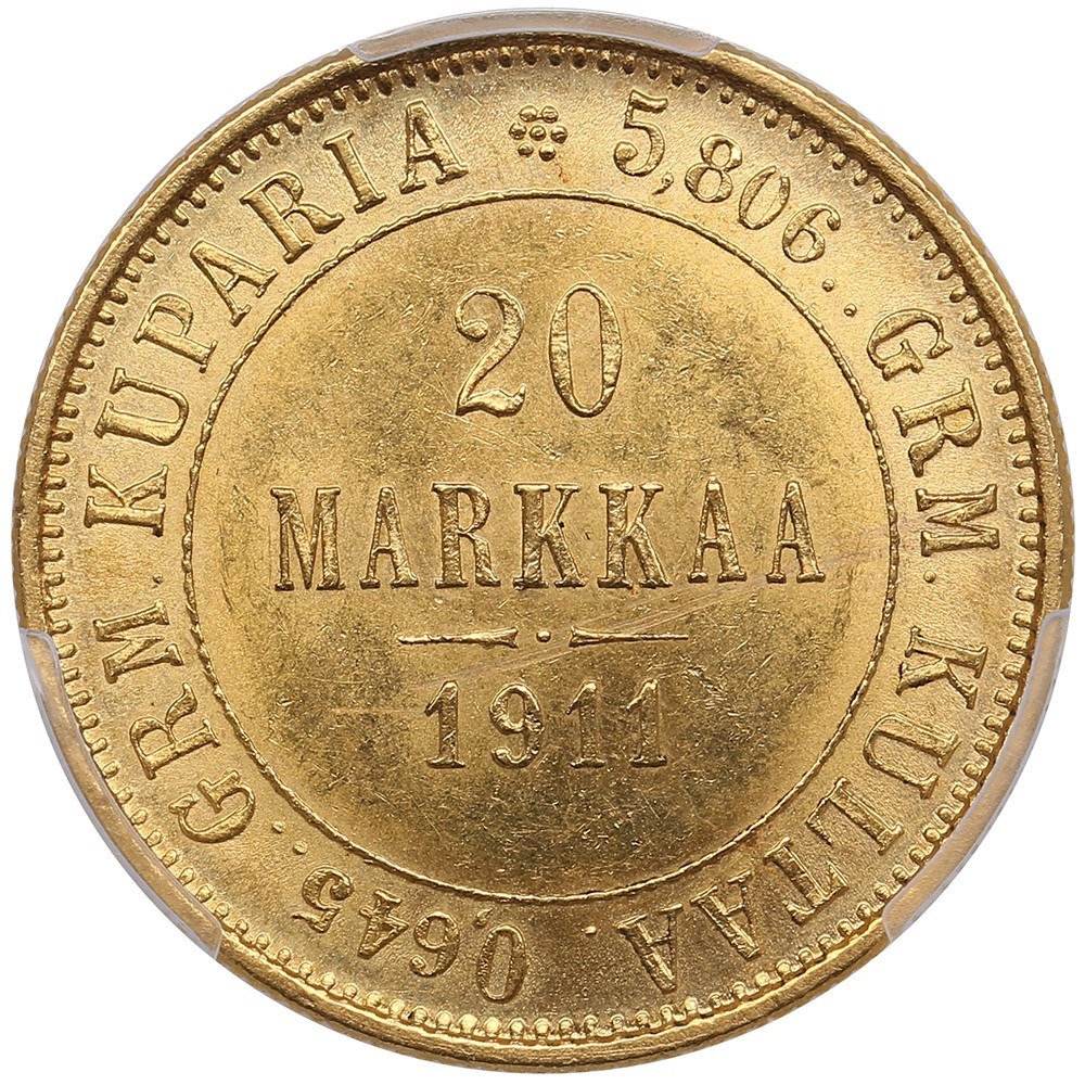 Finland (Russia) 20 Markkaa 1911 L - Nicholas II (1894-1917) - PCGS MS63