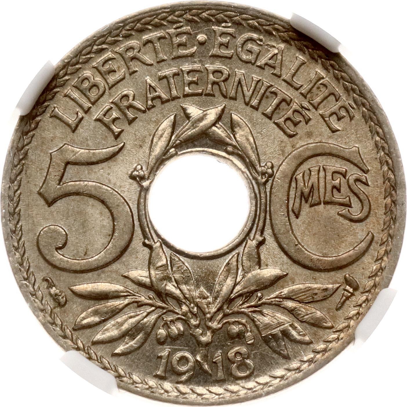 France 5 Centimes 1918 NGC MS 63