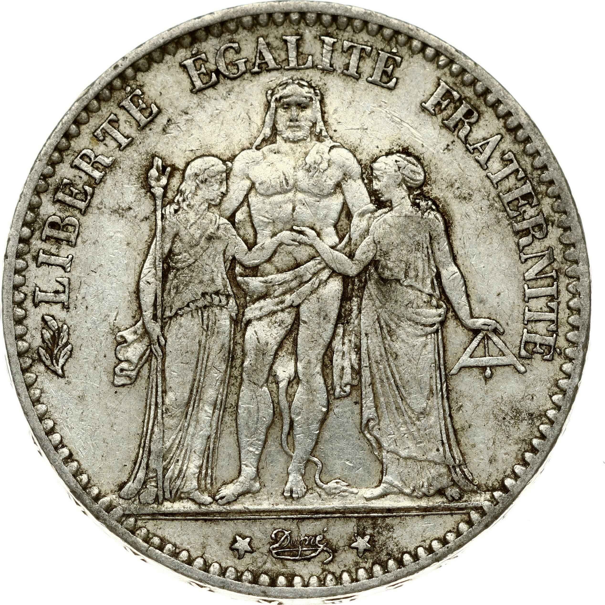 France 5 Francs 1875A Obverse: Hercules group. Reverse: Denomination within wreath. Silver. KM 820.1