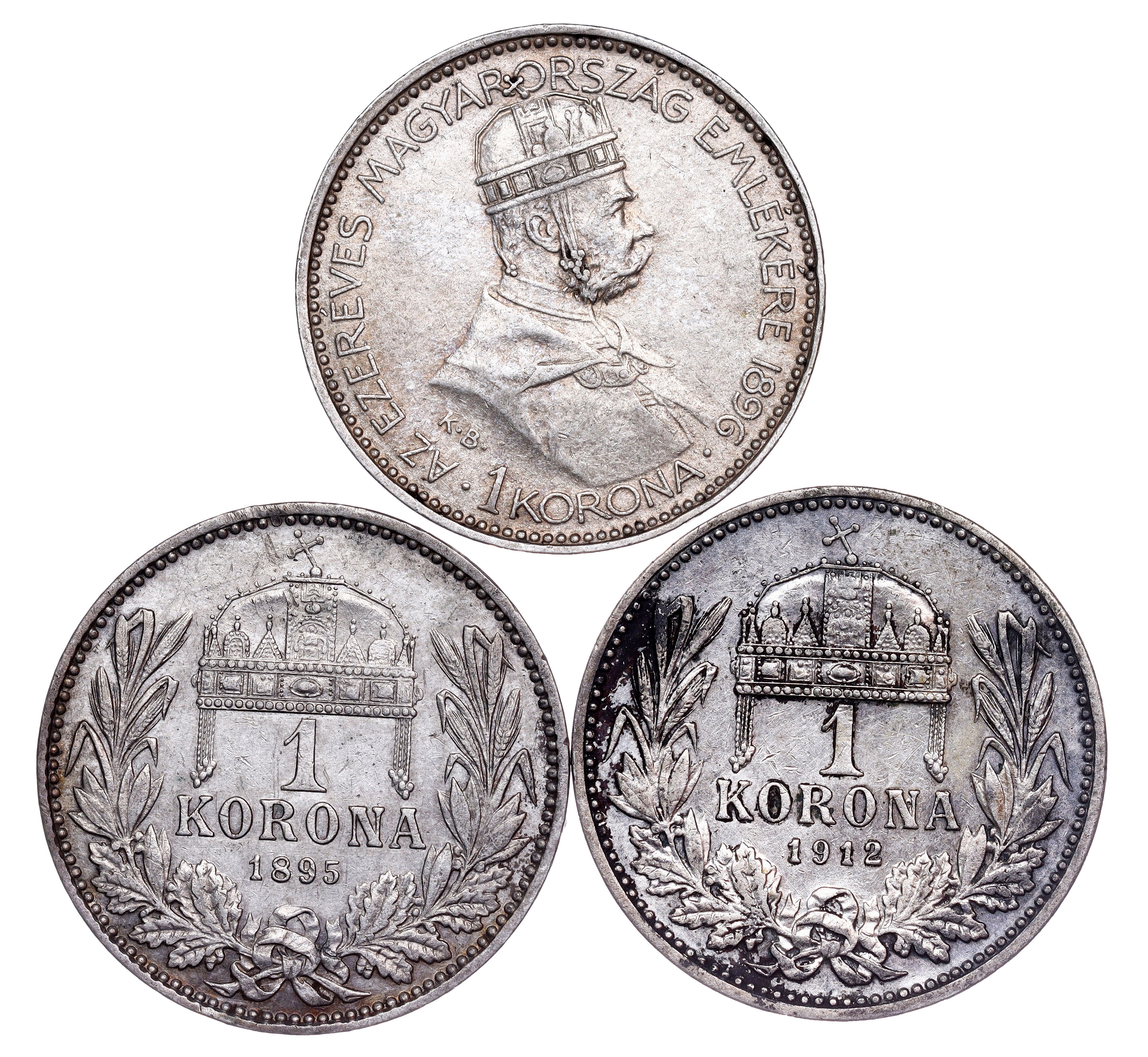 Franz Joseph I. (1848-1916) 1 Korona KB LOT - 3 pcs
