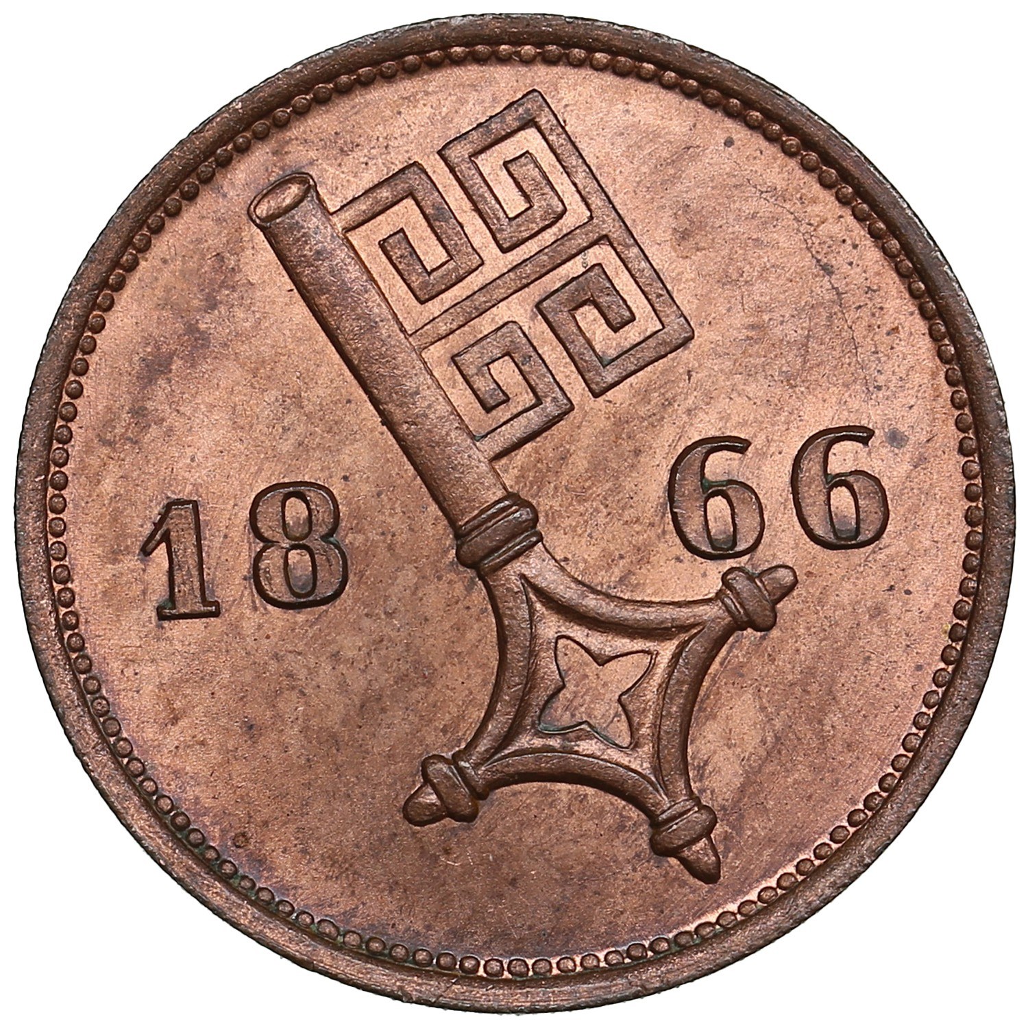 An outstanding piece, retaining original red mint luster beneath thick aged toning.