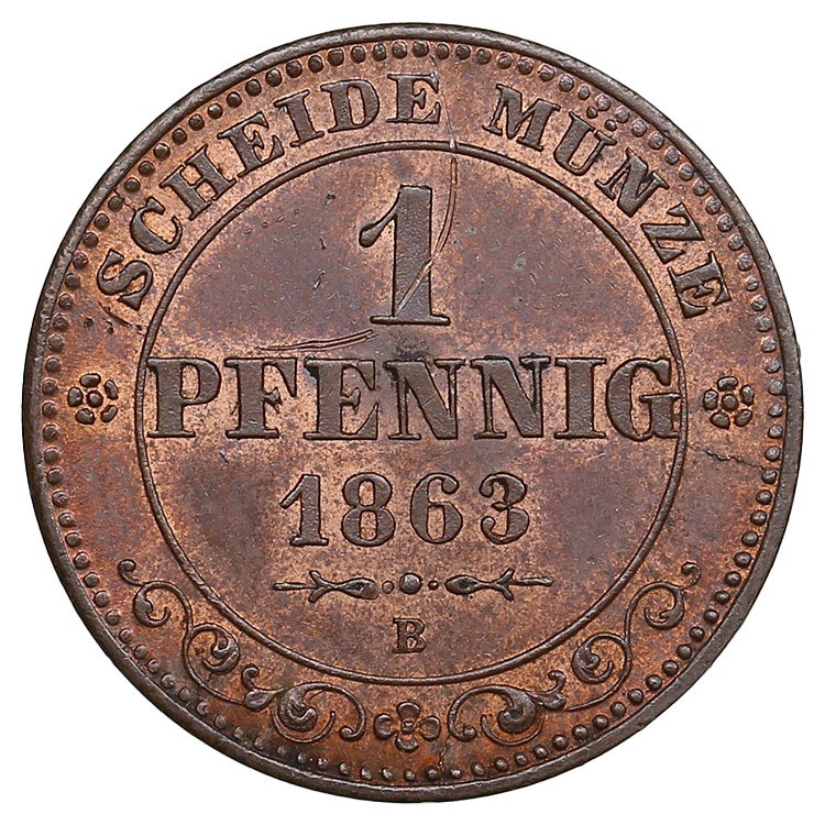 German States, Kingdom of Saxony, Albertinian Line (Dresden) 1 Pfennig 1863 - Johann I (1854-1873)