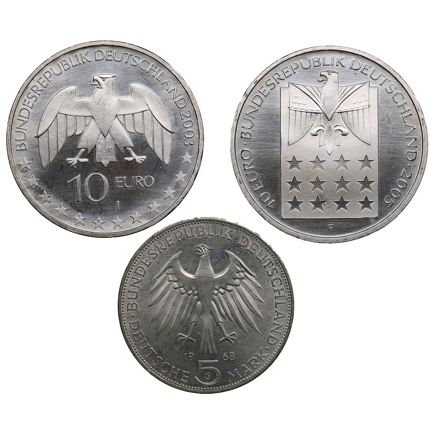 Germany 5 Mark 1968, 10 Euro 2003, 2005 (3)