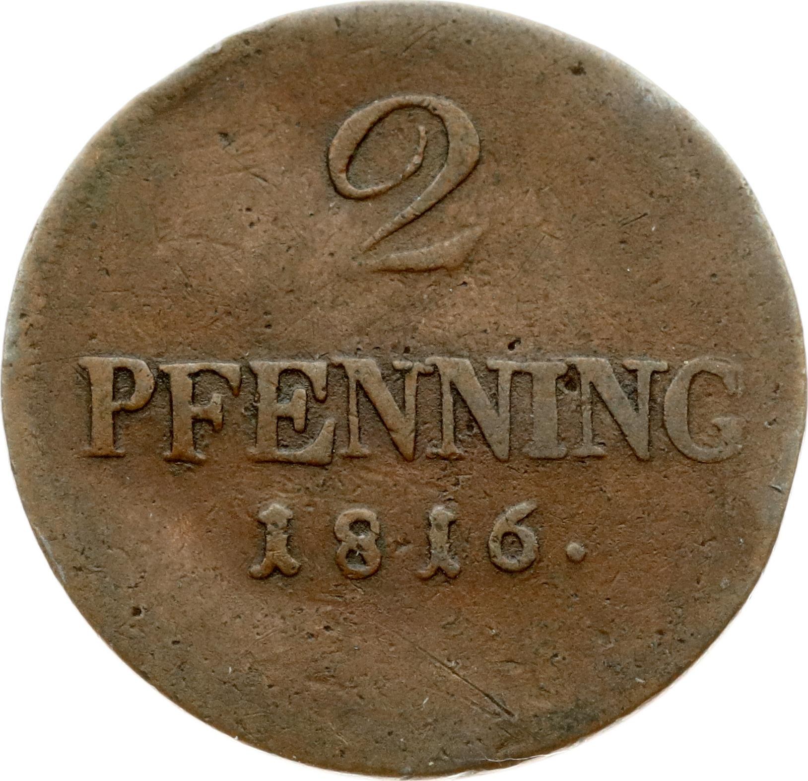 Germany, Bavaria. Maximilian I Joseph (1805-1825). 2 Pfenning 1816. Copper 2.34 g. KM 681.