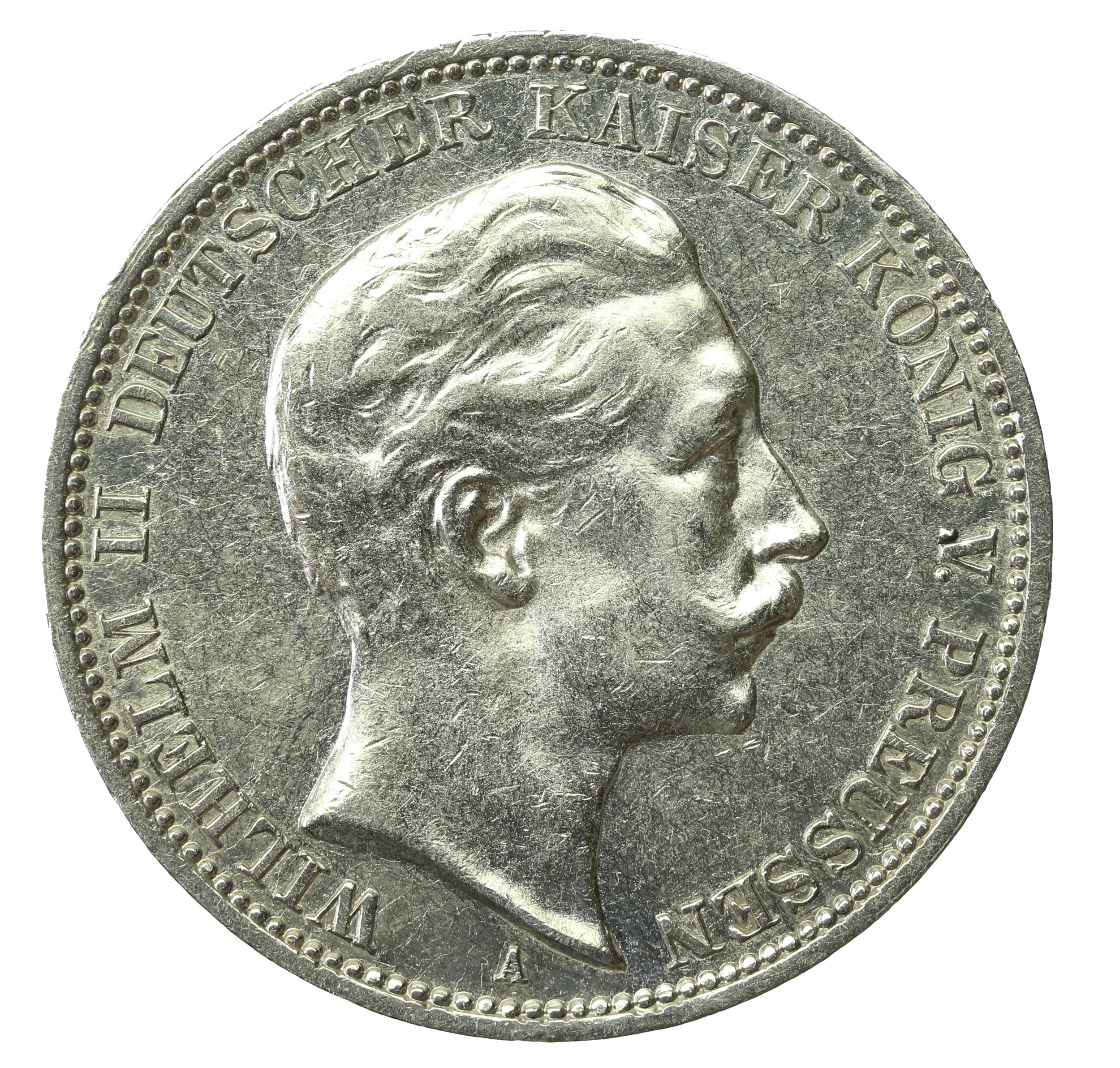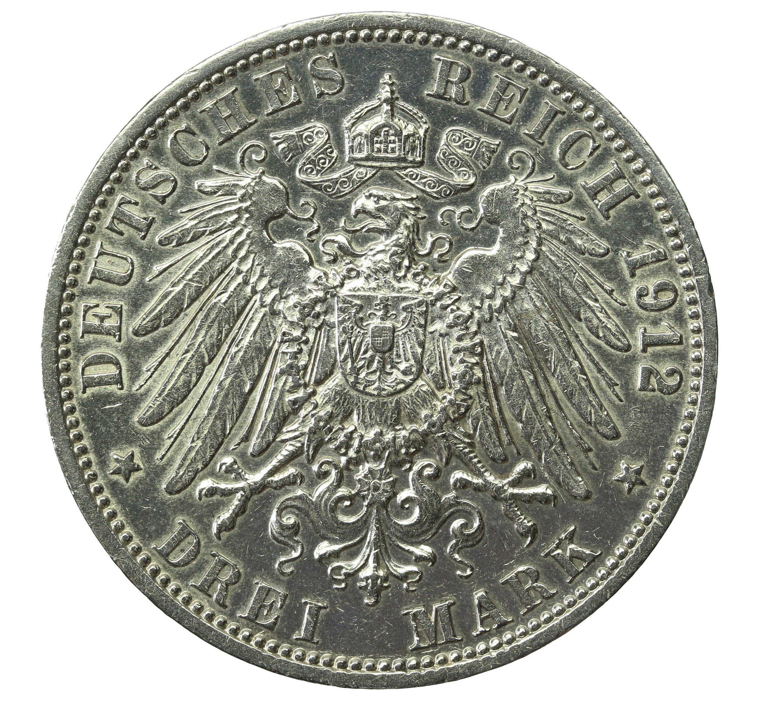 Niemcy, Prusy, Wilhelm II, 3 marki 1912 A, Berlin. Srebro 0.900. Waga katalogowa 16.67 g. Stan 2. Literatura: Jaeger 103