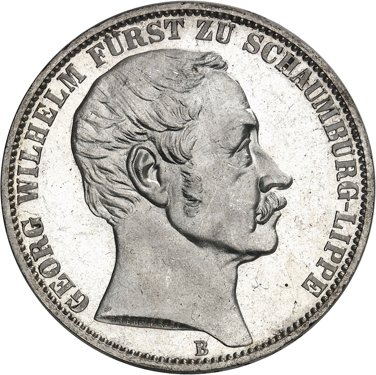 Av. GEORG WILHELM FÜRST ZU SCHAUMBURG-LIPPE. Tête nue à droite, signature BREHMER. F sur la tranche du cou ; au-dessous (atelier).