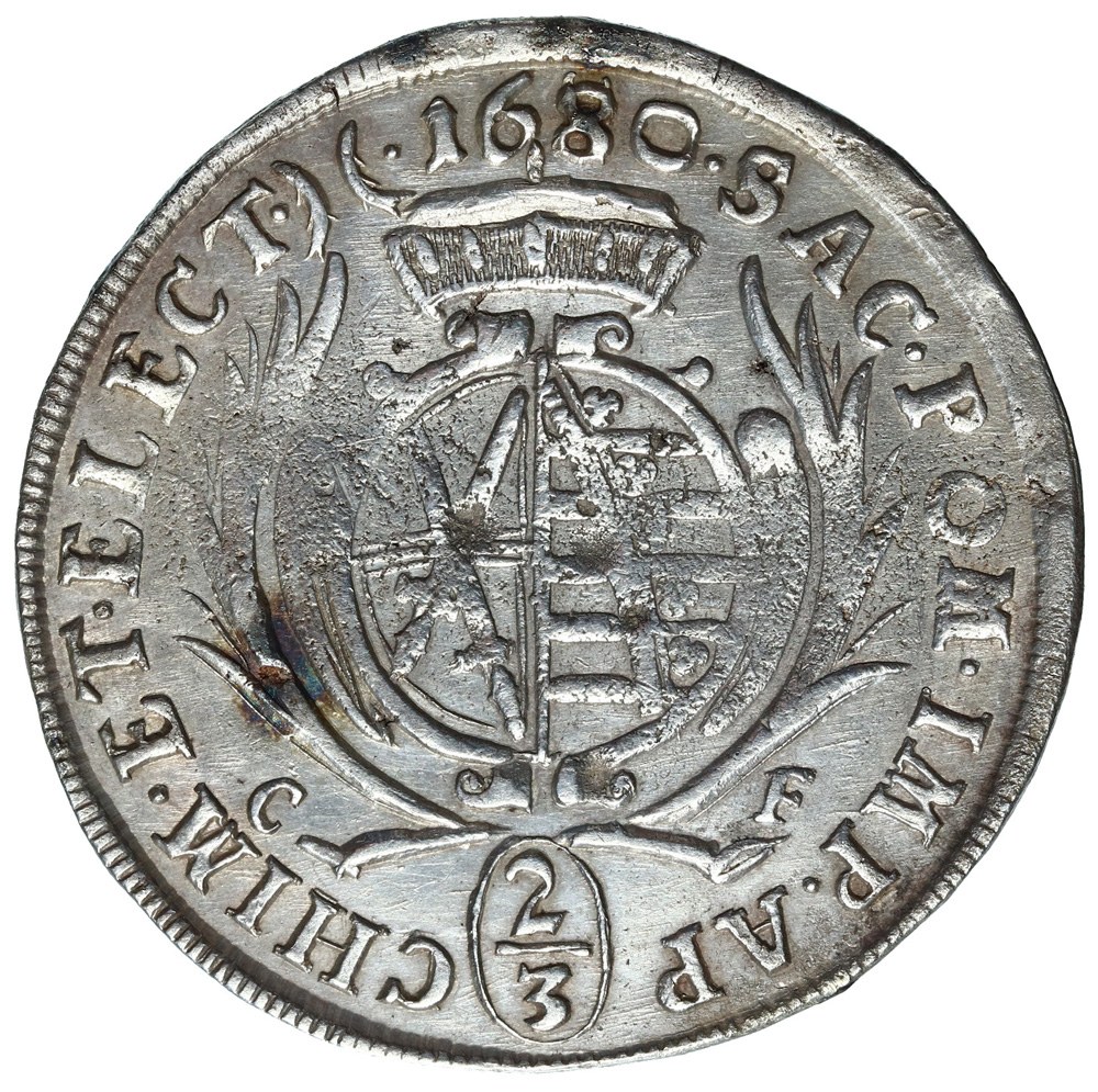 Ładny egzemplarz, zachowany miejscowo połysk, typowa dla tego bicia wada blachy.