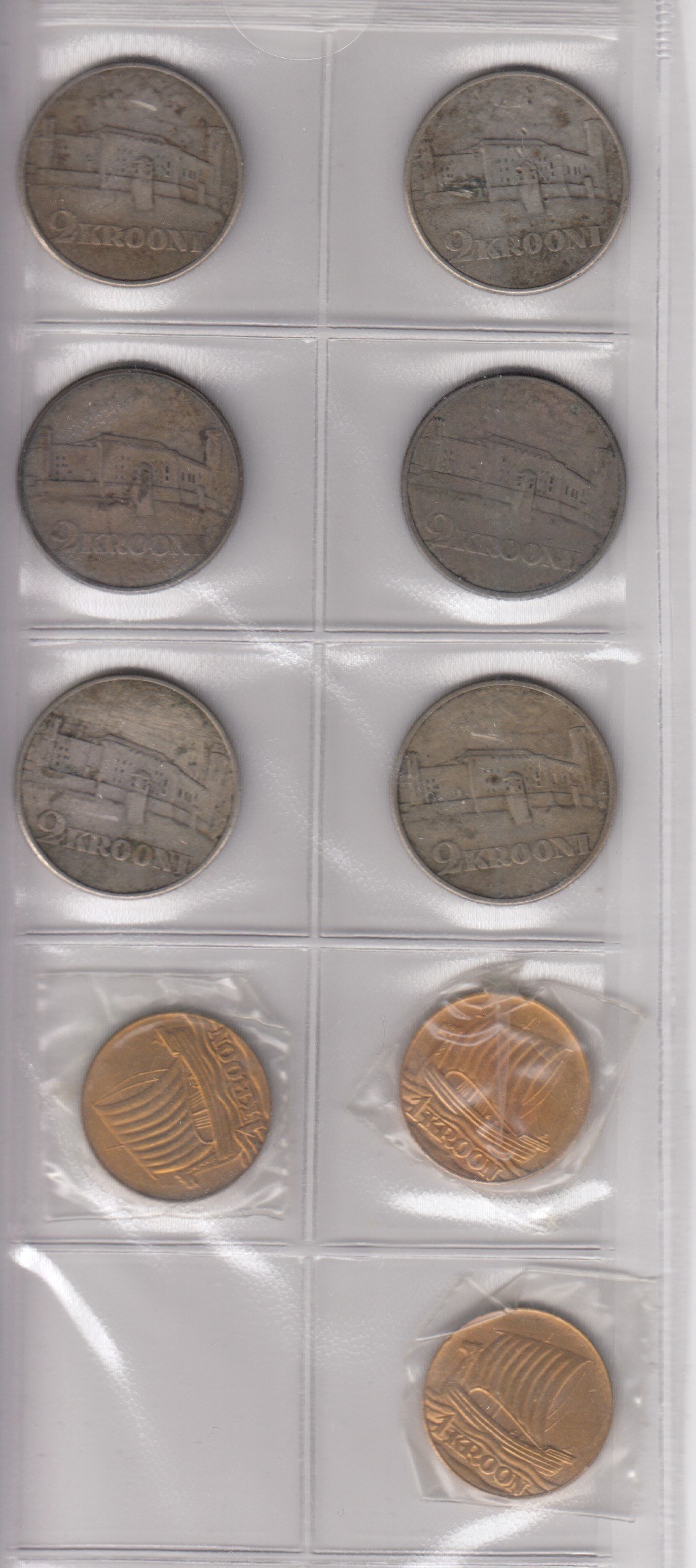 Various condition. 2 Krooni 1930 - Toompea Fortress (6). KM 20. 1 Kroon 1990 (3). KM X Tn6. Restrike issue of 1 Kroon 1934.