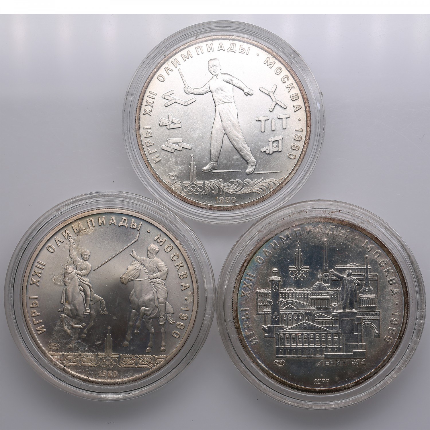 UNC. 5 Roubles 1980 - Gorodki. Y 182; 5 Roubles 1980 - Equestrian Isindi. Y 181; 5 Roubles 1977 - Leningrad. Y 146.