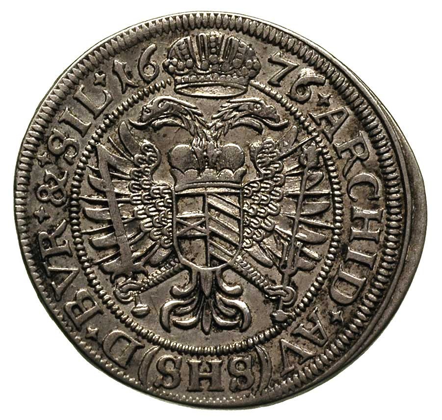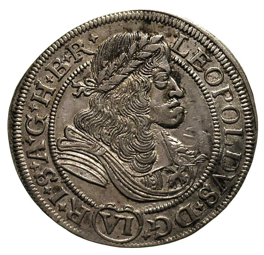 ŚLĄSK pod panowaniem habsburskim, Leopold I 1658-1705, 6 krajcarów 1676, Wrocław, FuS. 498, piękny egzemplarz, delikatna patyna