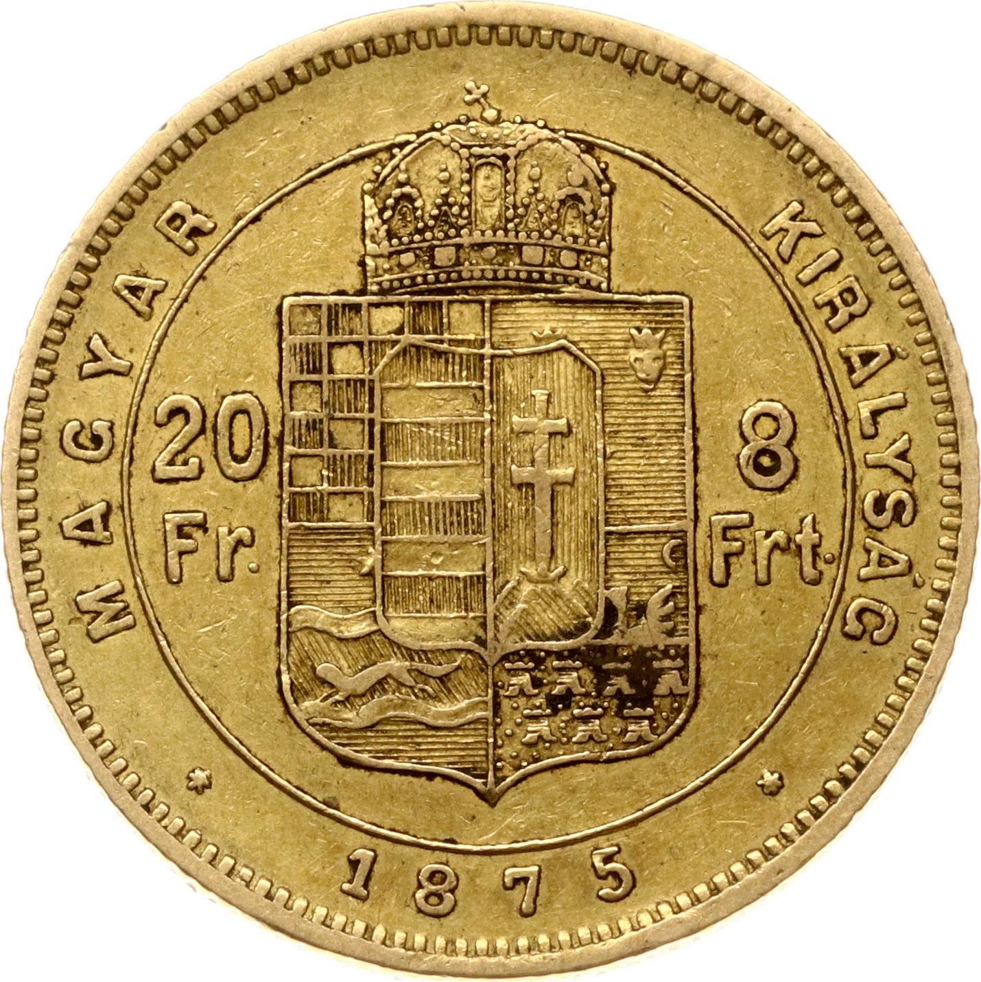 Hungary. Franz Joseph I (1848-1916). 20 Francs / 8 Forint 1875 KB. Gold 6.42 g. KM-455.