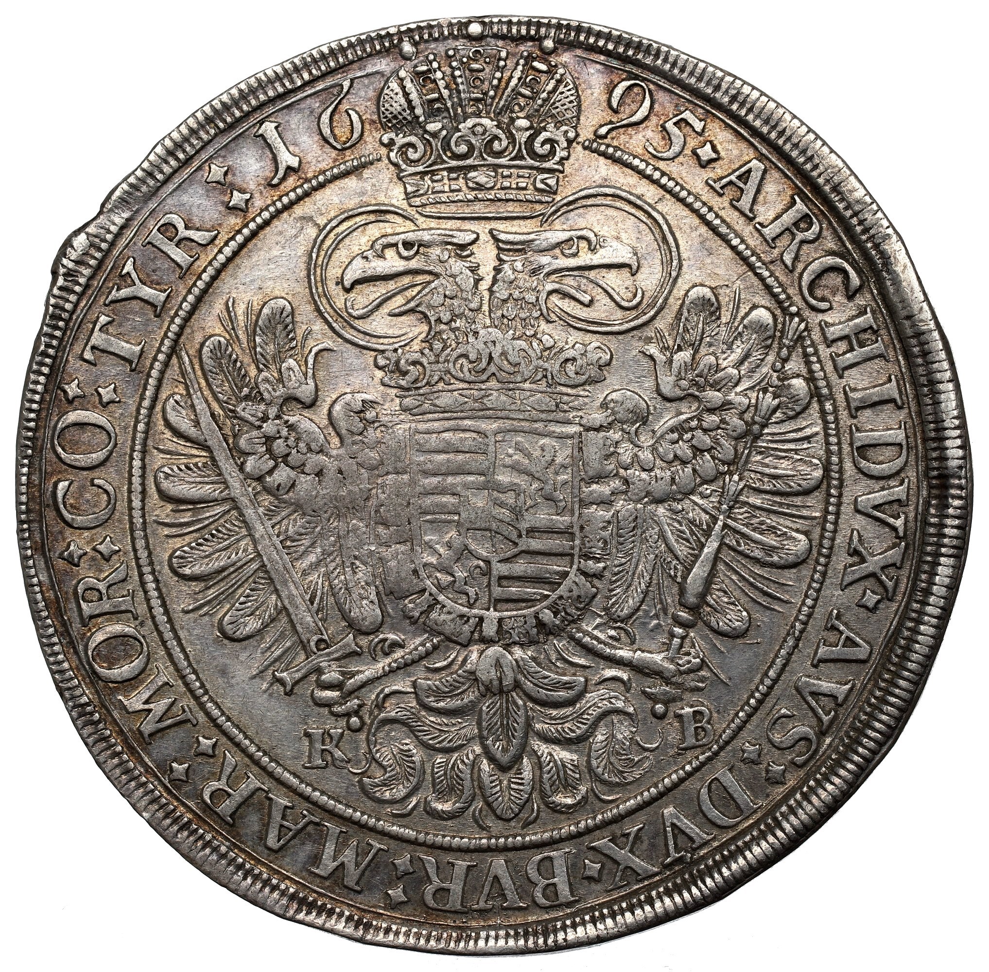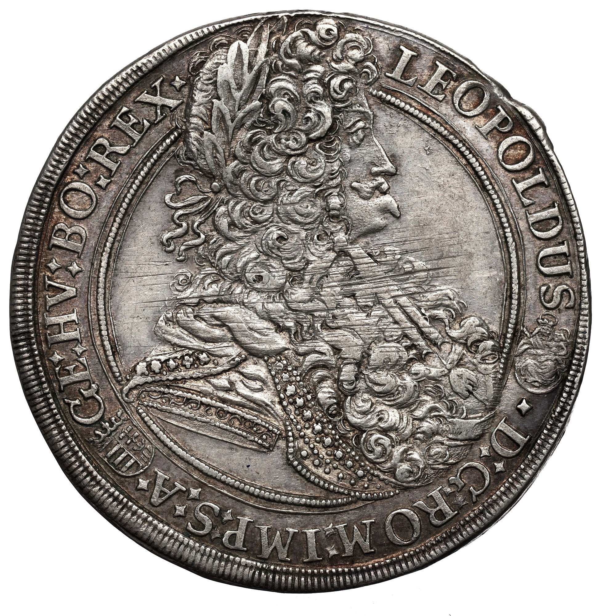 Awers: popiersie w wieńcu laurowym, zbroi i szacie, z Orderem Złotego Runa, w prawo, w otoku legenda przedzielona herbem Węgier i Maryją z dzieciątkiem: