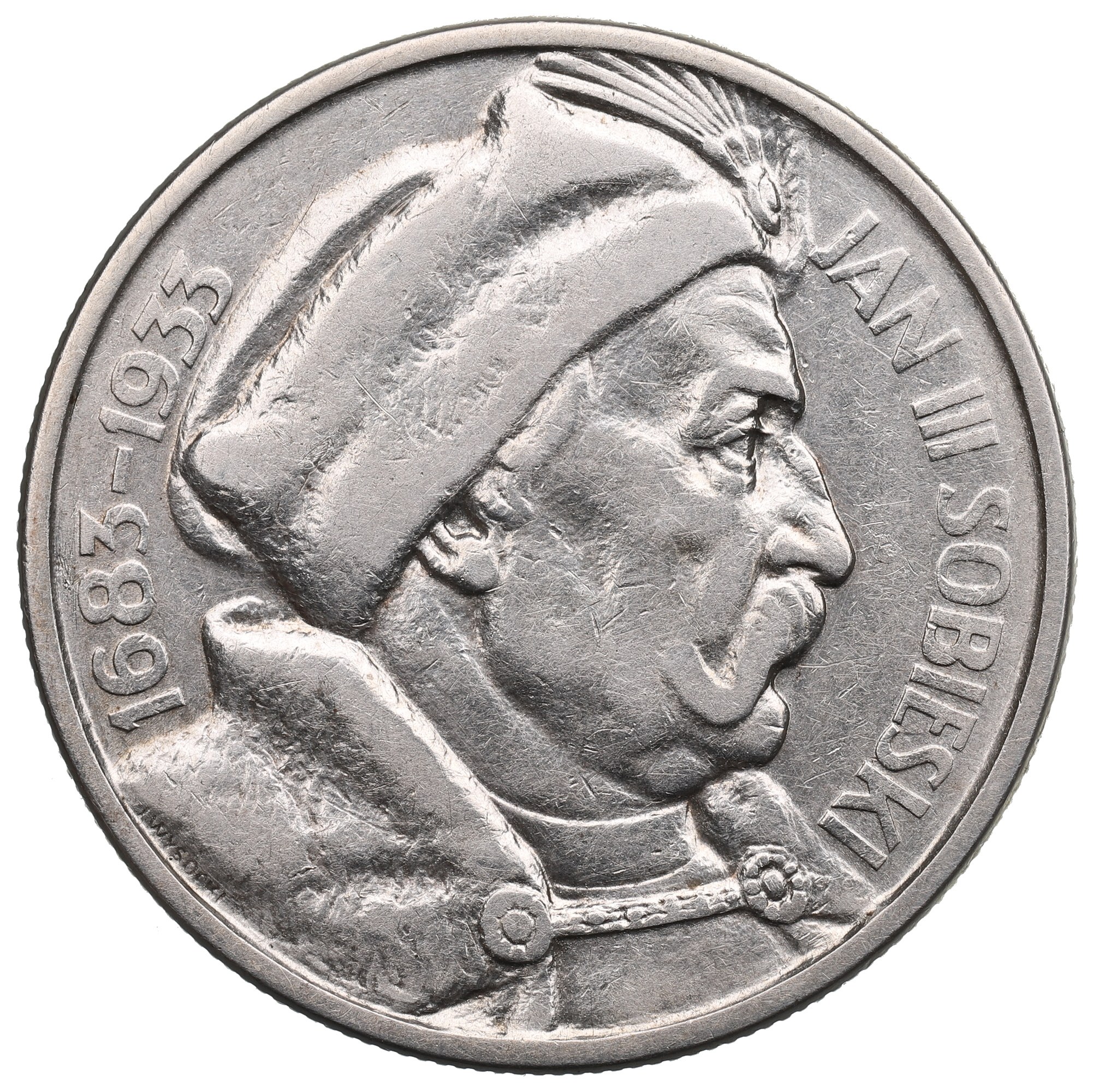 Rewers: popiersie króla Jana III, w otoku legenda JAN III SOBIESKI 1683-1933.