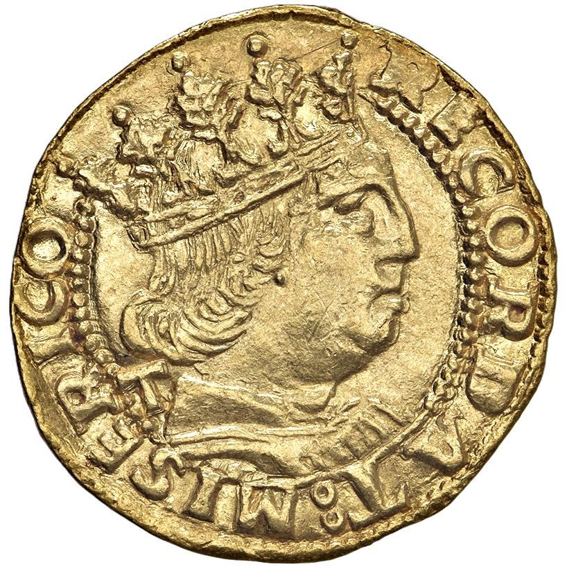 NAPOLI Ferdinando I d'Aragona (1458-1494) Ducato - MIR manca AU (g 3,43) RRRRR Questa moneta presenta al D/ la corona terminante con foglie grandi e legenda MISERICO invece di MISERICORDIE SVE, come al MIR 64/9 (RRR), ma con FERDINANDVS invece di FERRANDVS al R/.