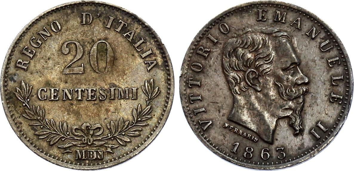 Italy 20 Centesimi 1863 M BN Interesting Overstrike! Very Rare!