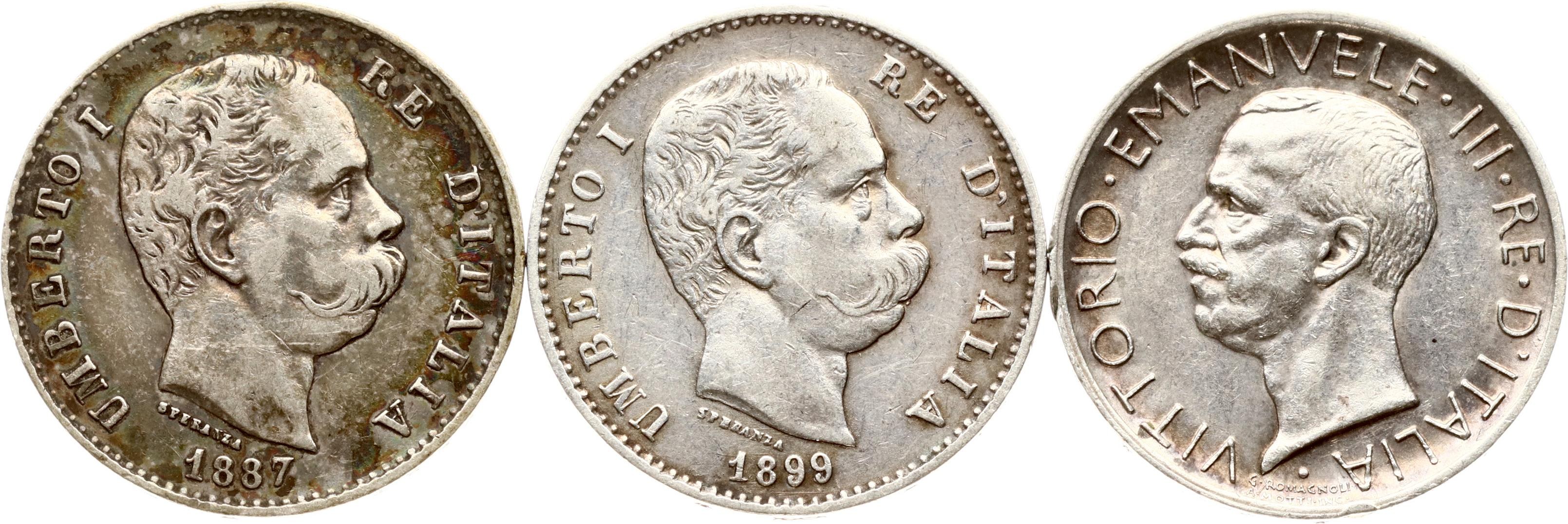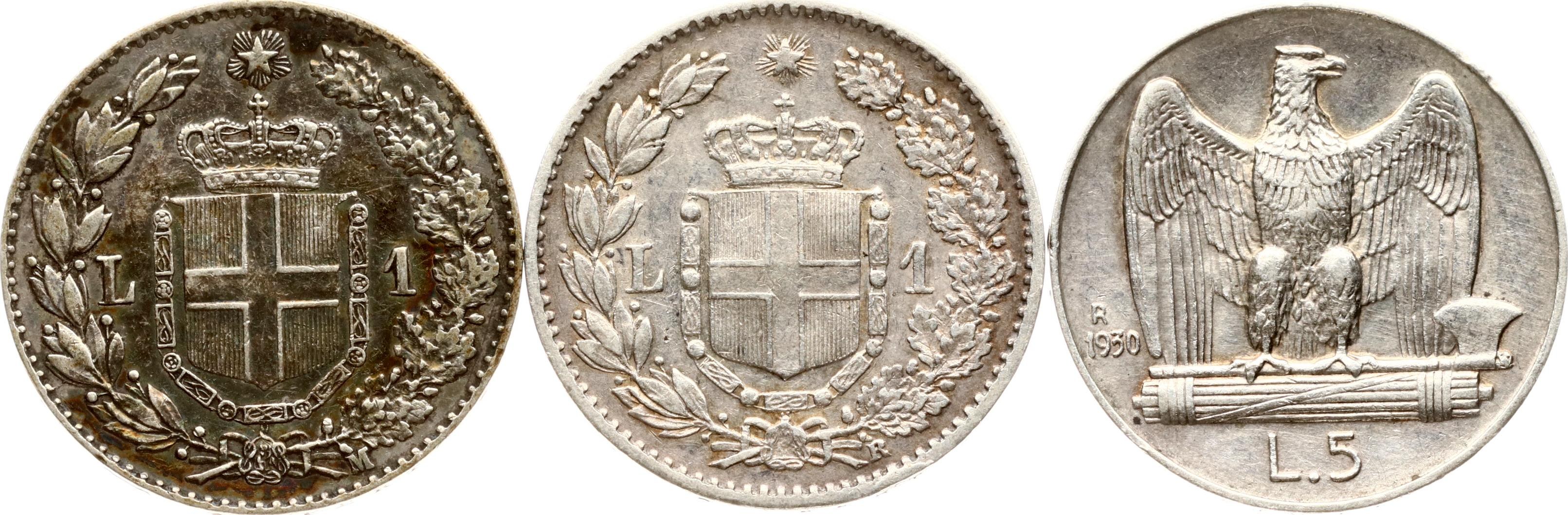 Italy 1 & 5 Lire 1887-1930 Lot of 3 coins