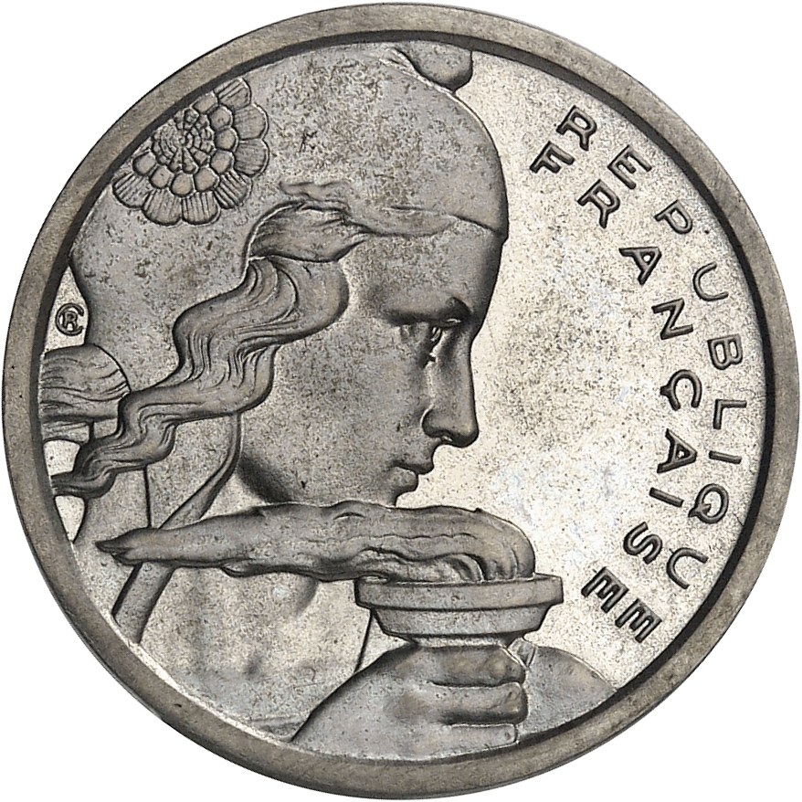 Av. REPUBLIQUE FRANÇAISE. Buste de Marianne coiffée du bonnet de la Liberté avec cocarde, et tenant un flambeau allumé dans le vent. Signature RC derrière la nuque.