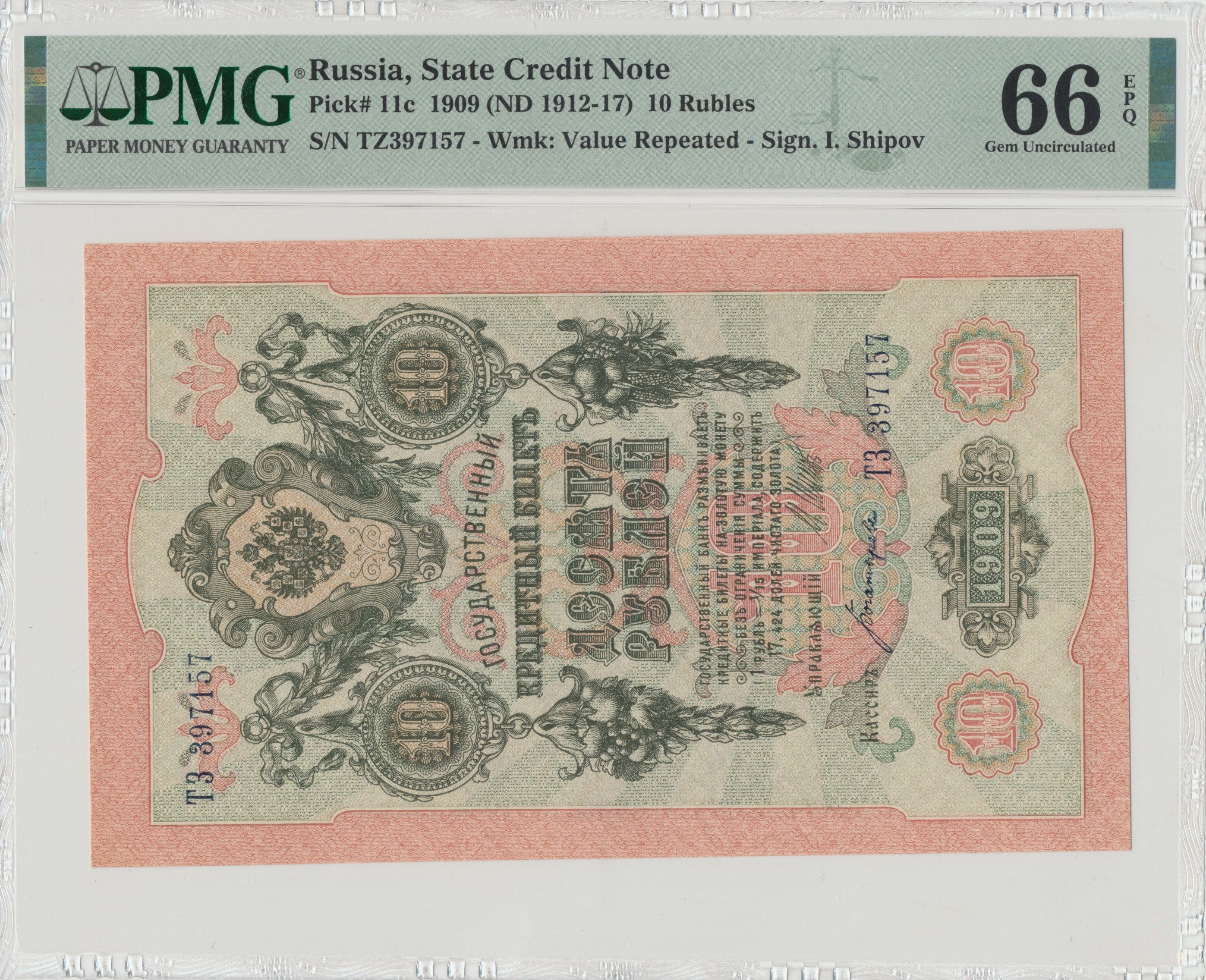 Wyśmienicie zachowany banknot o idealnej żywej kolorystyce druku doceniony wysoką notą przez PMG.