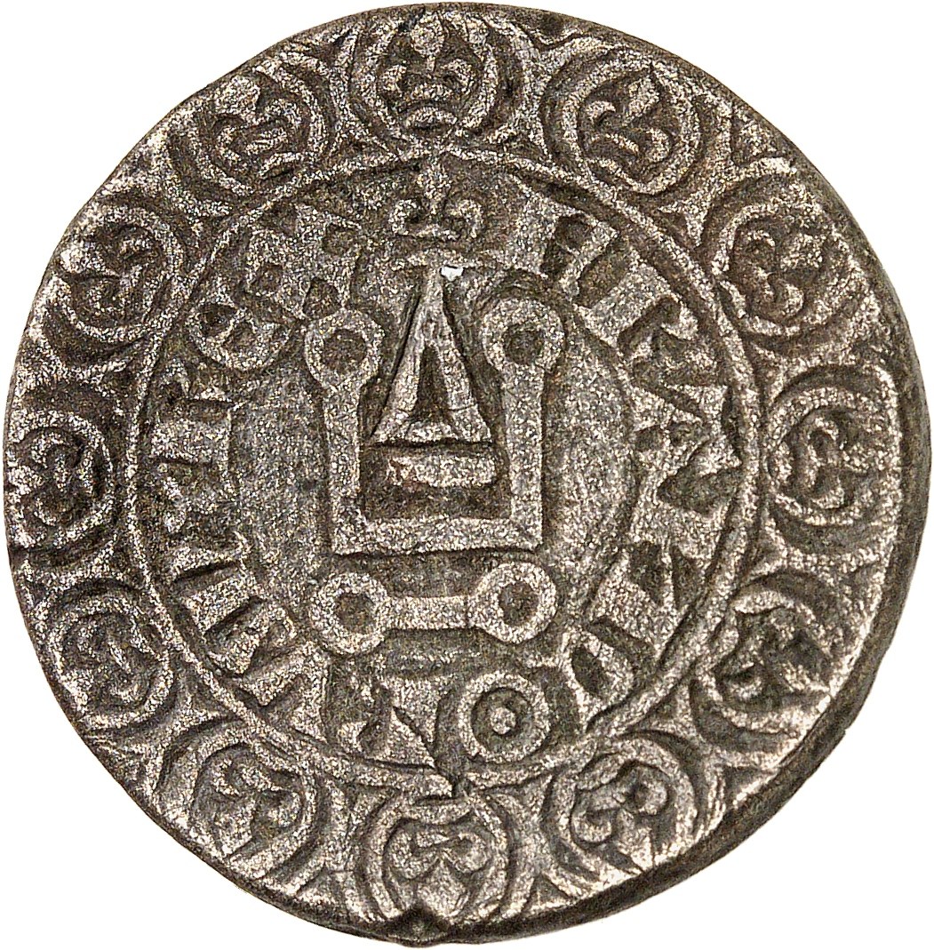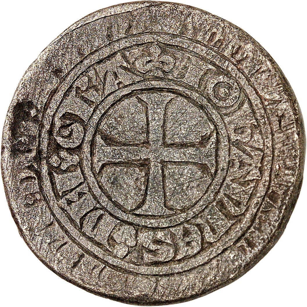 Av. (lis) IOHANNES (fleur) DEI (fleur) GRA. Croix. Légende extérieure : + BNDICTV: SIT: NOMEN: DNI: NRI: DEI: IHV: XPI.