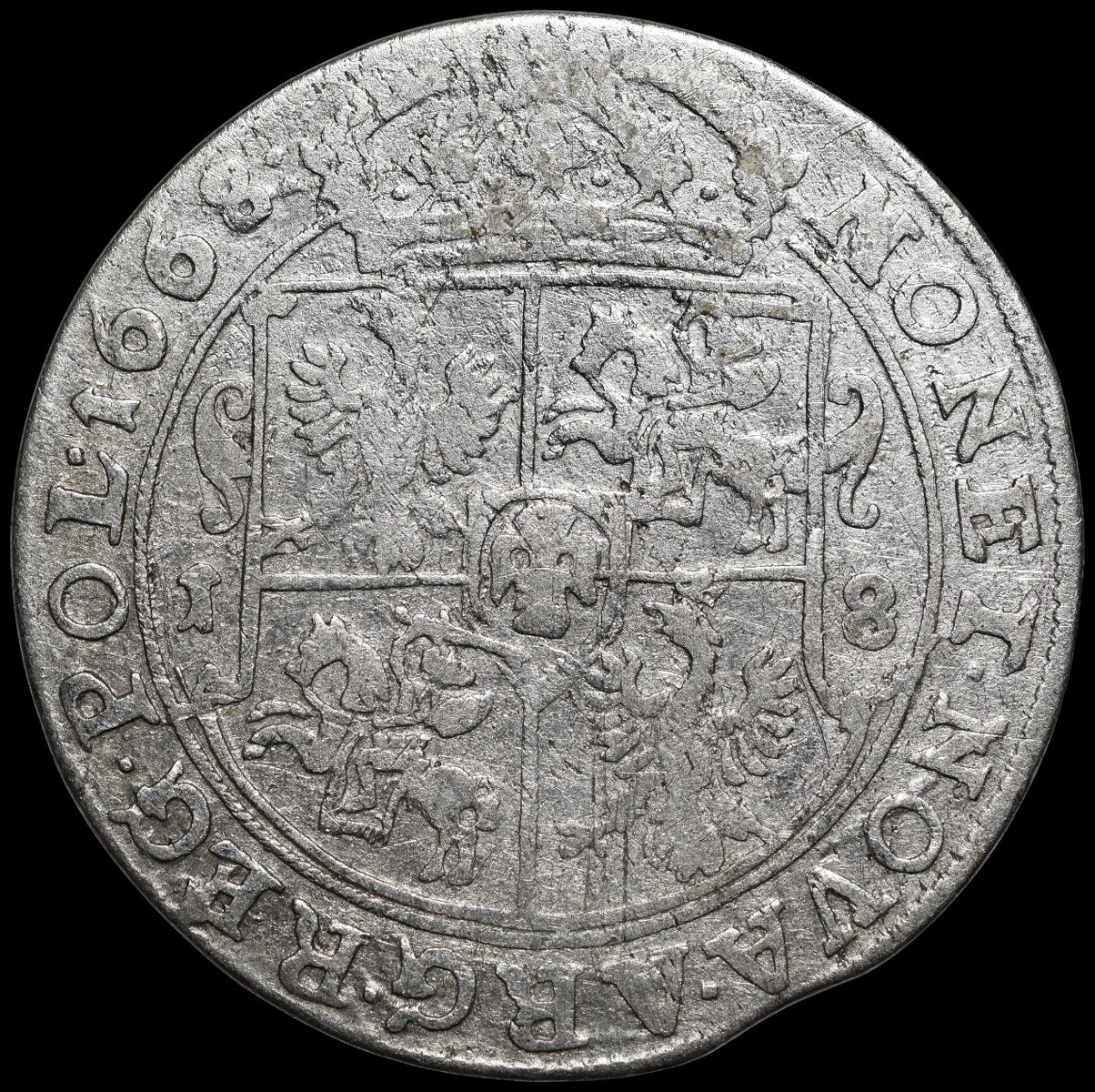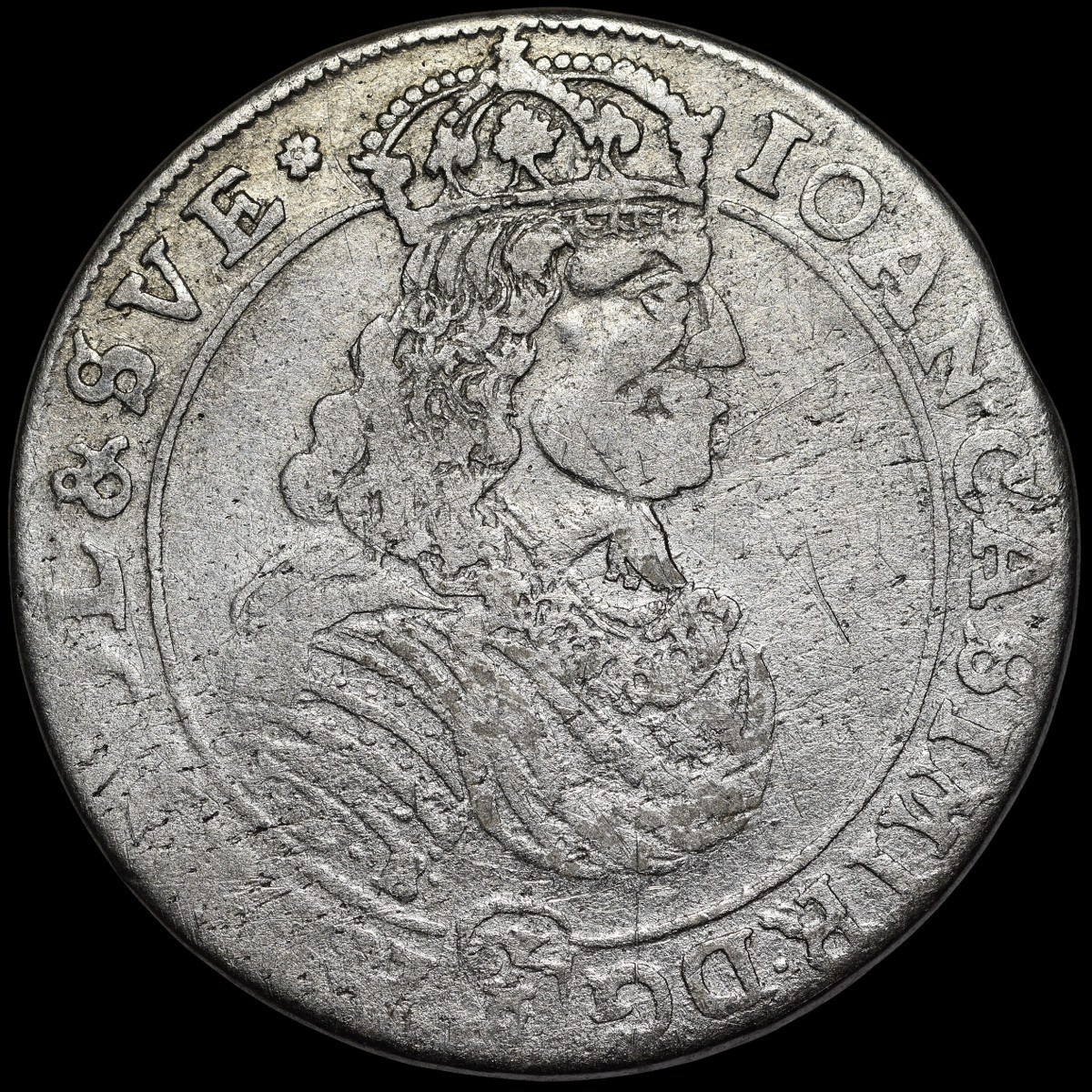 Odmiana napisowa z tytulaturą króla IOAN CASIMIR ... w otoku na awersie oraz MONET