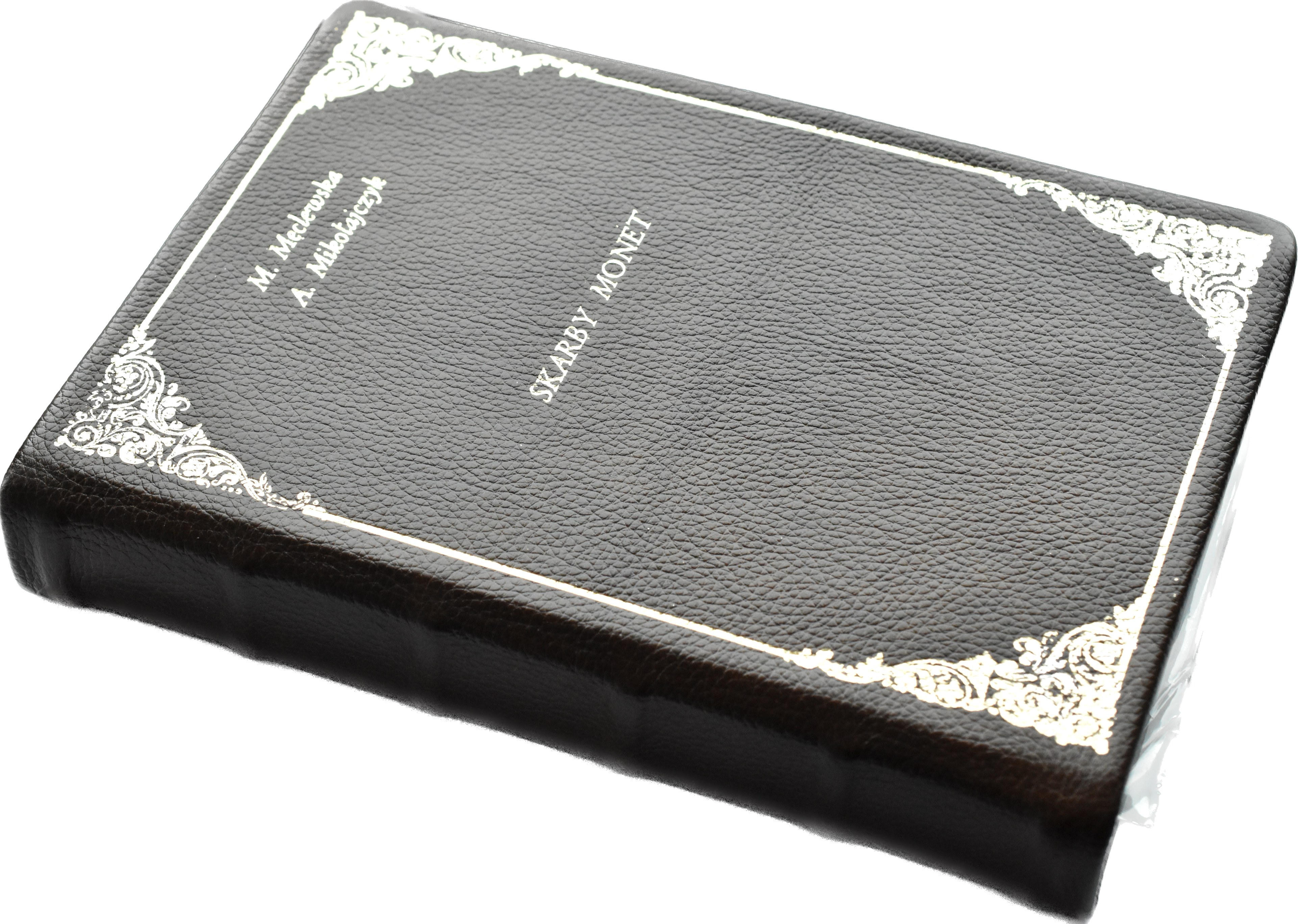 Komplet 2 tomów poszukiwanego i cenionego katalogu, tutaj w oprawie bibliofilskiej w pełnej brązowej skórze ze zdobieniami. Złocone ornament i tytuł na przodzie okładki. Całość szyta nićmi. Pozycja rzadko pojawiająca się w komplecie jako dwa tomy na jednej aukcji, po raz pierwszy oferowana jako całość w oprawie bibliofilskiej. Do książki dołączony jest również komplet 7 map z zaznaczonymi miejscami opisywanych skarbów.