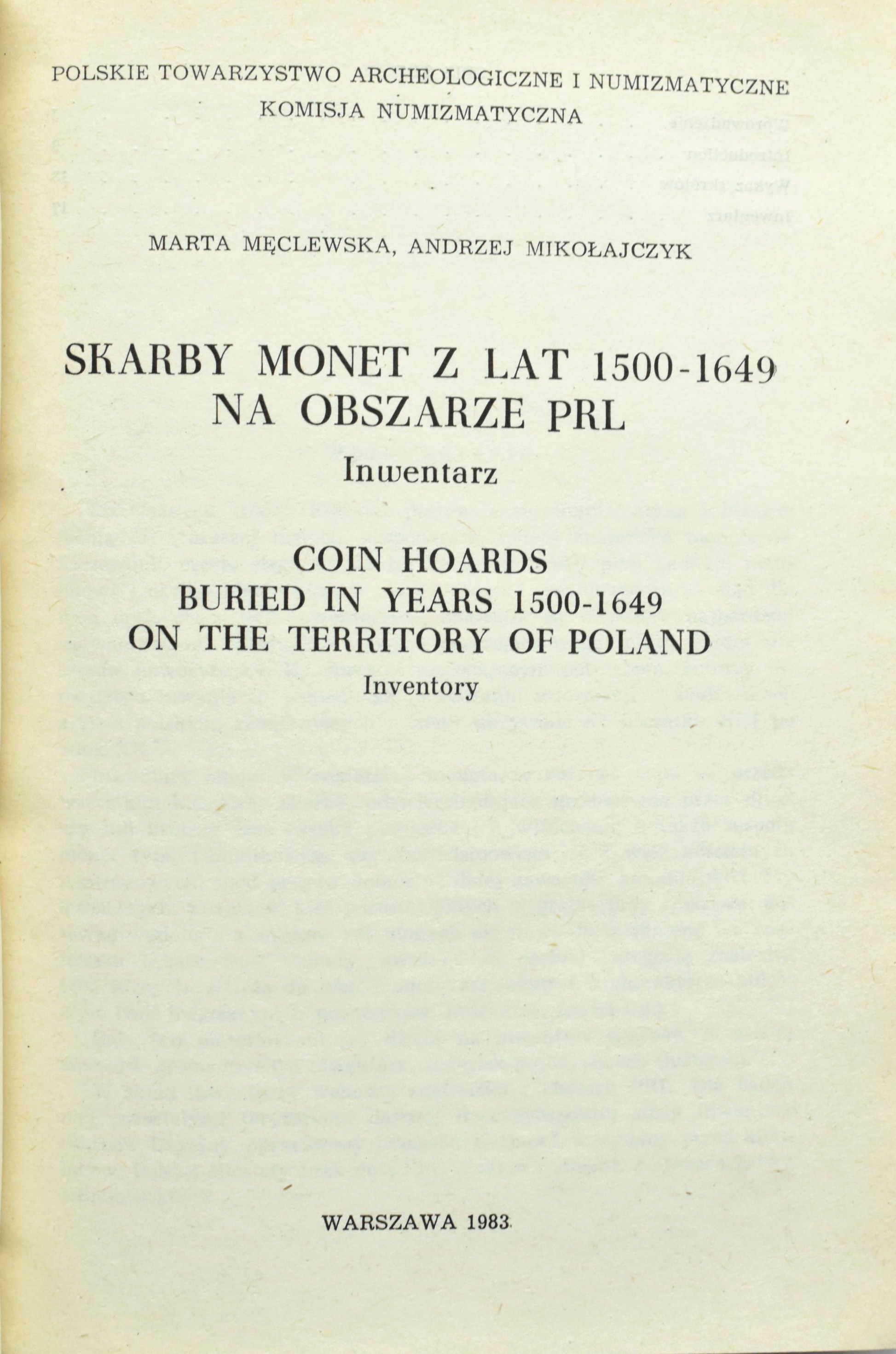 M. Męclewska, A. Mikołajczyk, Skarby monet z lat 1500-1659 i 1650-1944 na obszarze PRL, Warszawa 1983