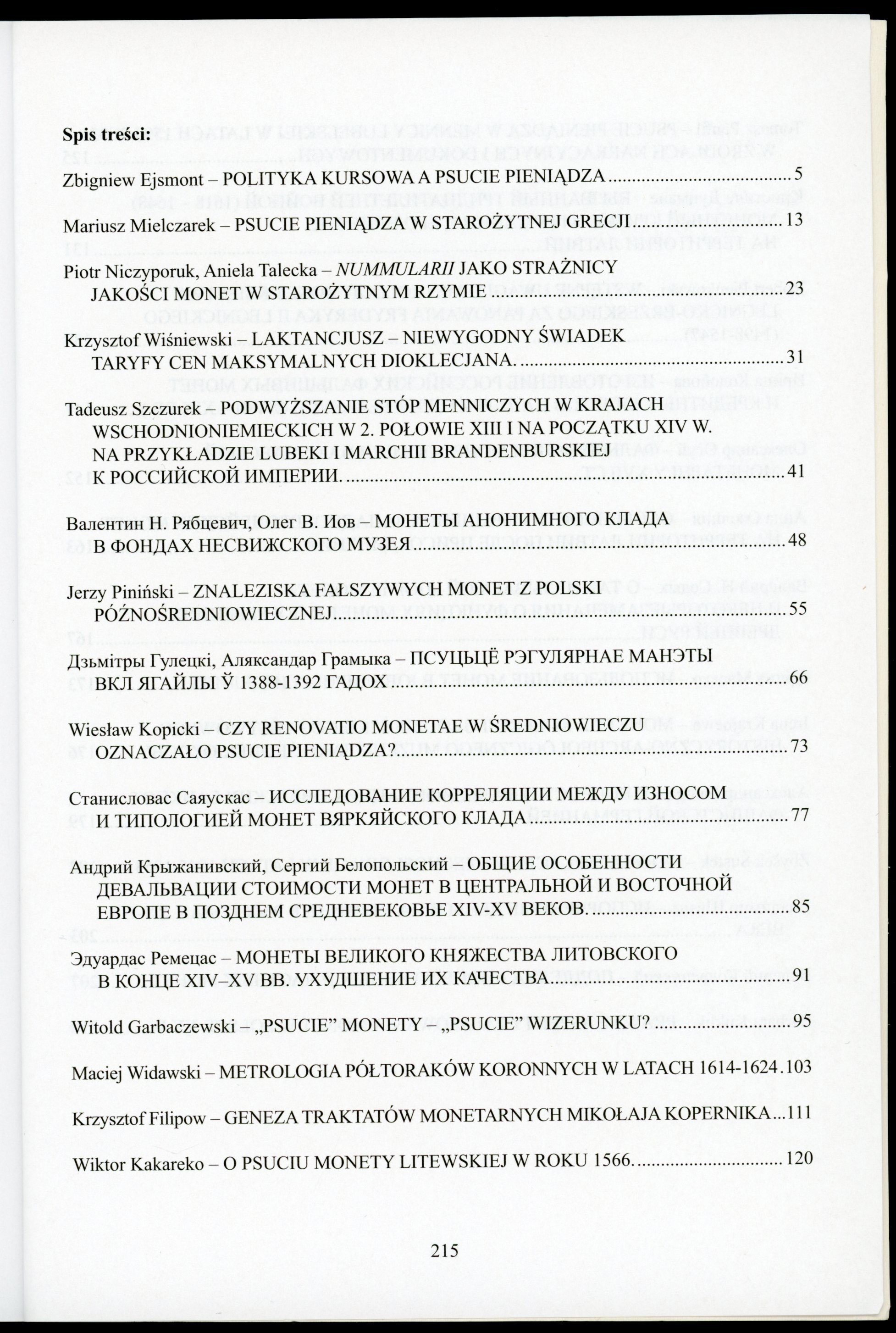 Filipow Krzysztof (red.) Psucie pieniądza w Europie Środkowo-Wschodniej od antyku po czasy współczesne.