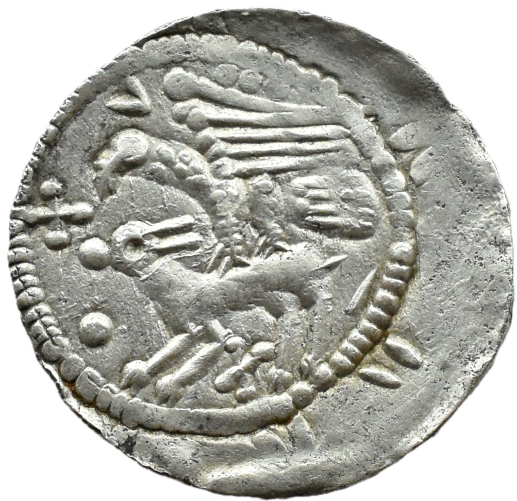 rewers: Orzeł nad Zającem, krzyż nad Zającem, kula pod nim oraz litera V nad głową Orła, całość w obwódce