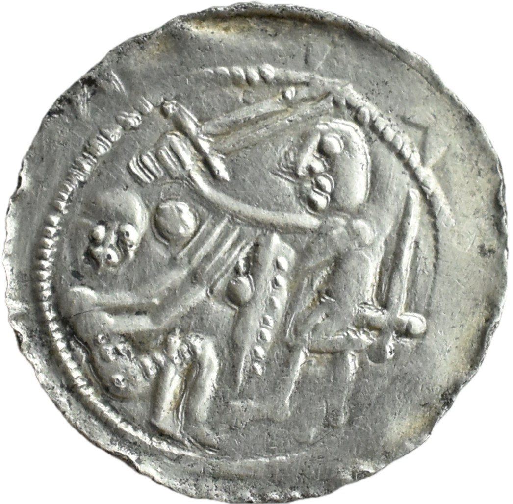awers: Książę z mieczem nad jeńcem, za plecami Księcia dodatkowy miecz skierowany ostrzem ku górze,
