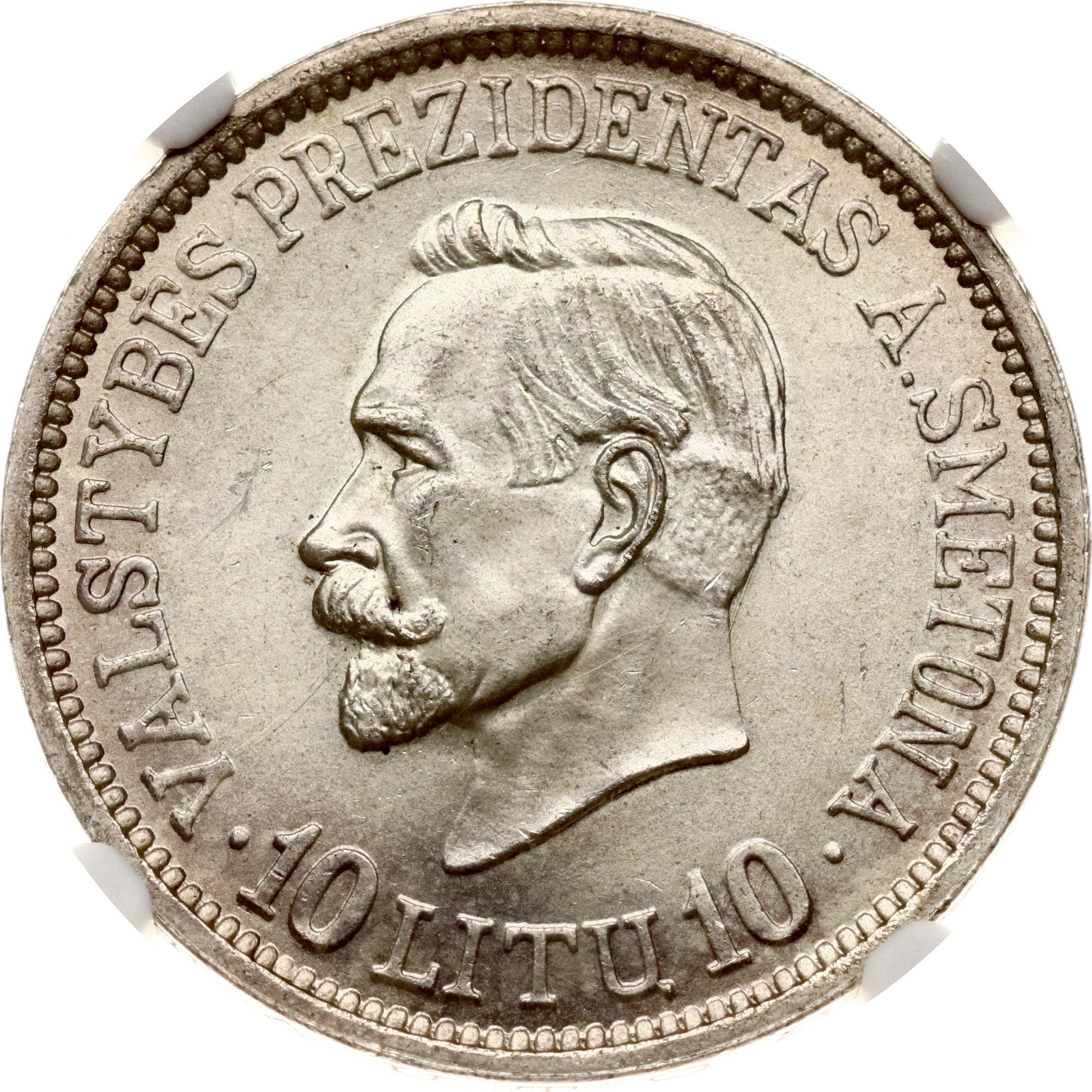 Lithuania 10 Litu 1938 Anatanas Smetona NGC MS 63
