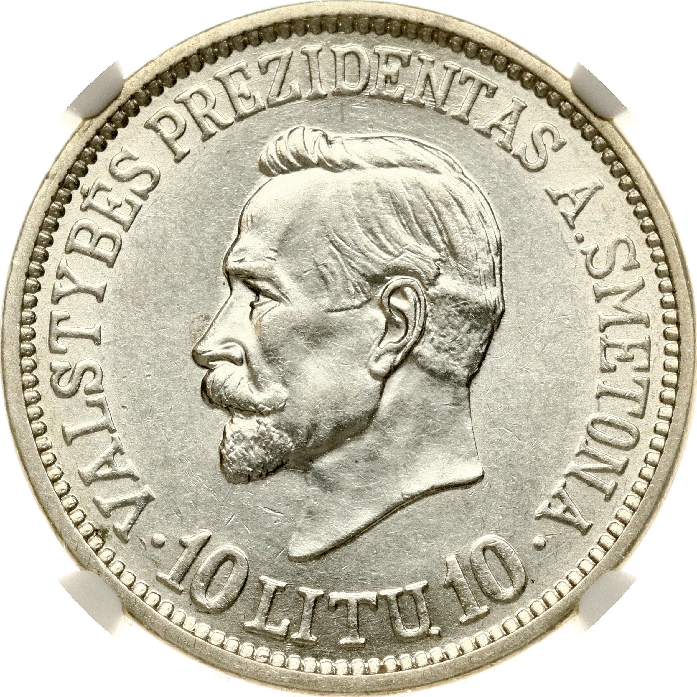 Lithuania 10 Litu 1938 Antanas Smetona NGC AU 58