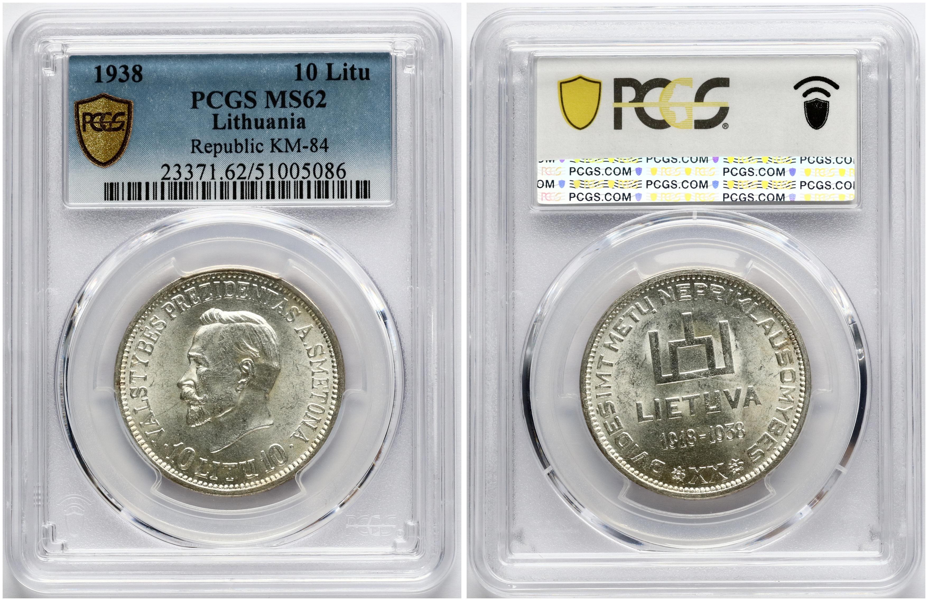 Lithuania 10 Litu 1938 Antanas Smetona PCGS MS 62