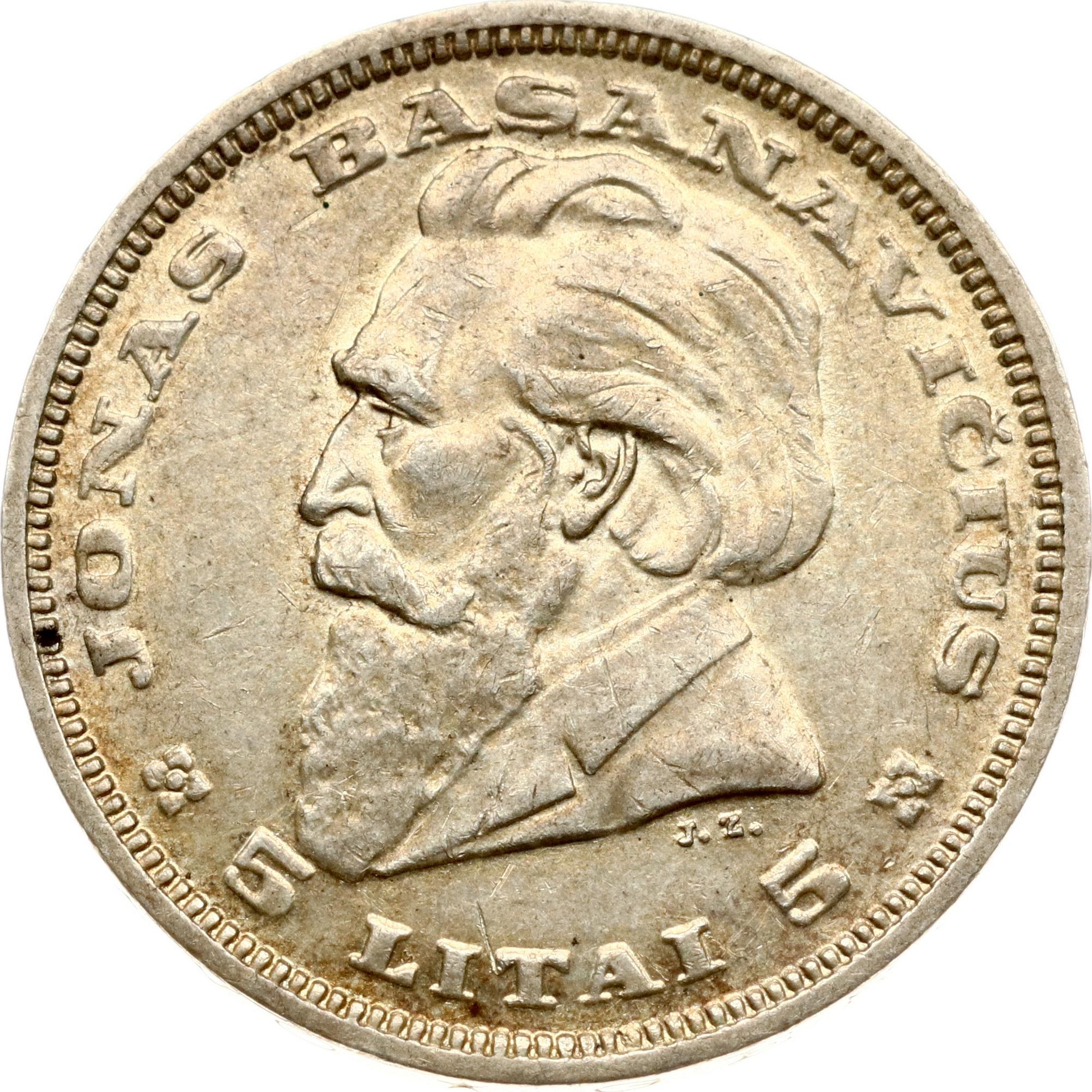 Lithuania. 5 Litai 1936, Jonas Basanavicius. Silver 8.88 g. KM 82.