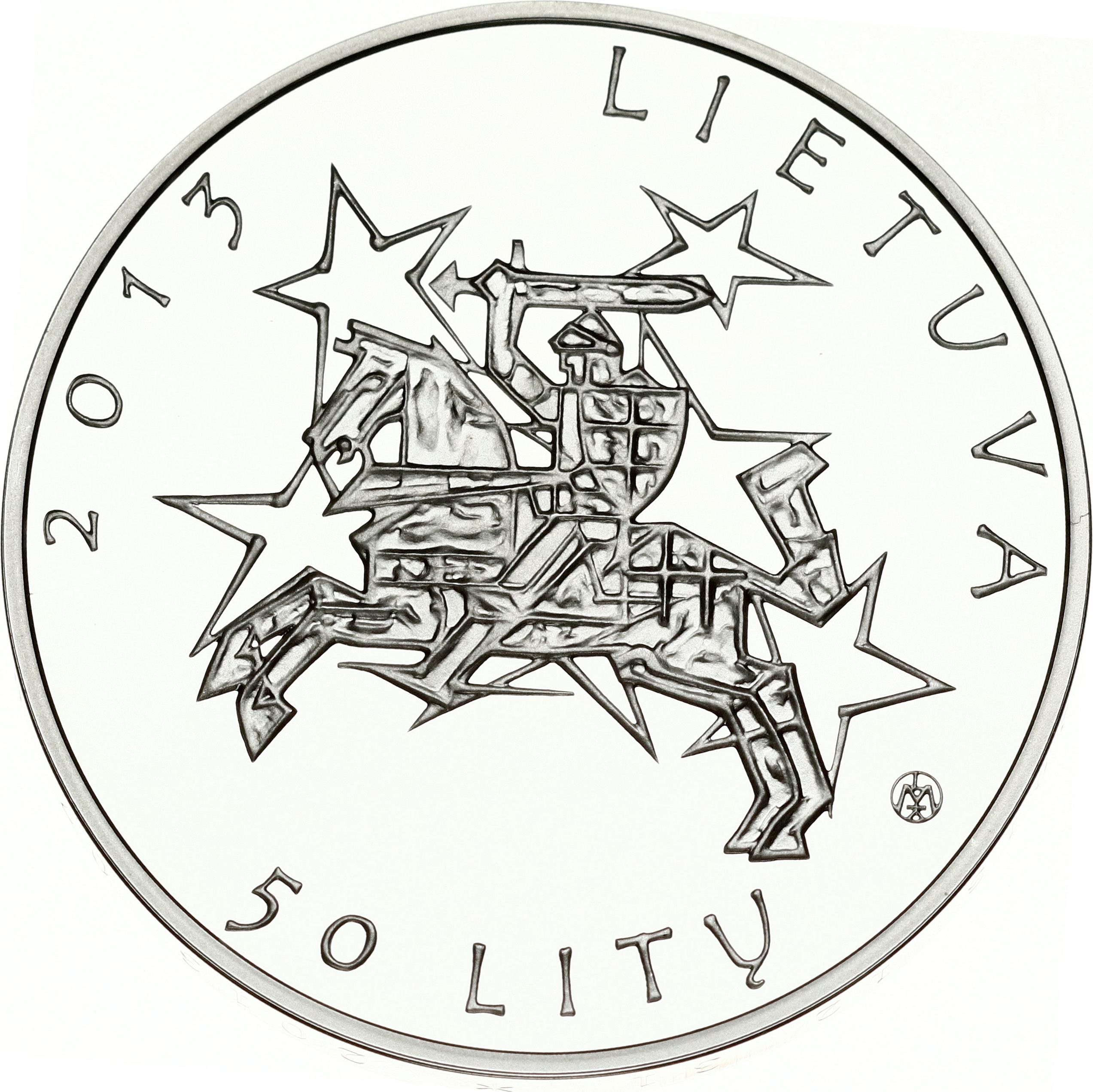 Lithuania. 50 Litu 2013 Presidency of the EU Council. Silver .925, 28.28 g. KM-196. With pack & certificate.