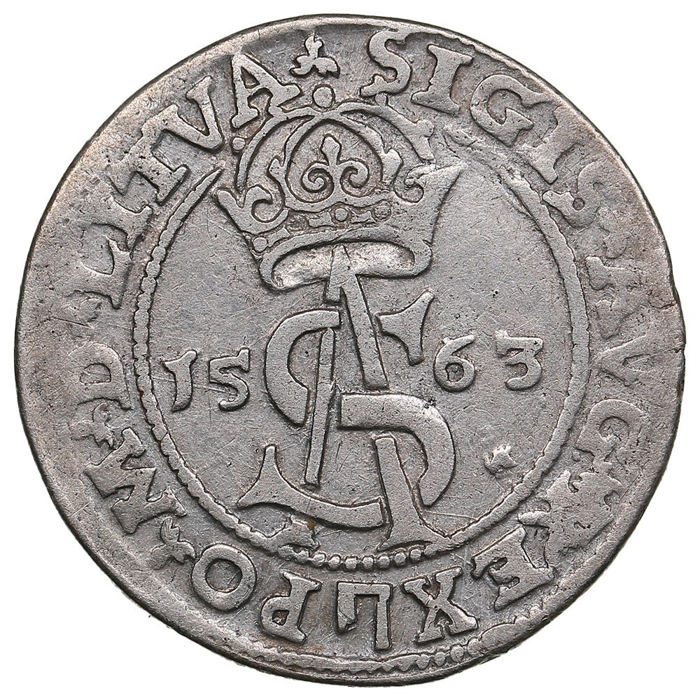 Obv.: Crowned SA monogram divides date 15-63; “SIGIS AVG REX (Topor arms) PO M D LITVA”.