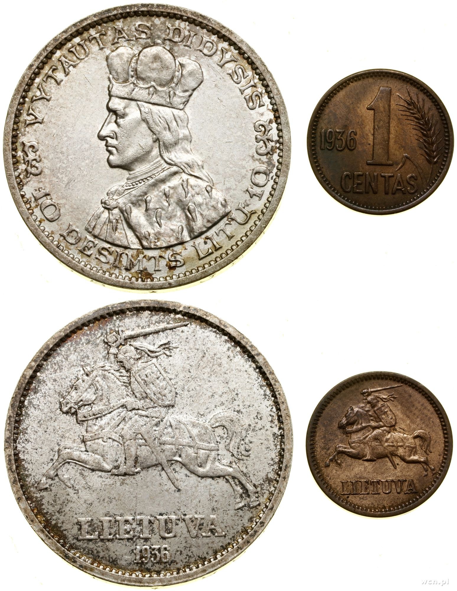 10 litów (Wielki Książe Witold) ( I/II ) i 1 cent ( I- )