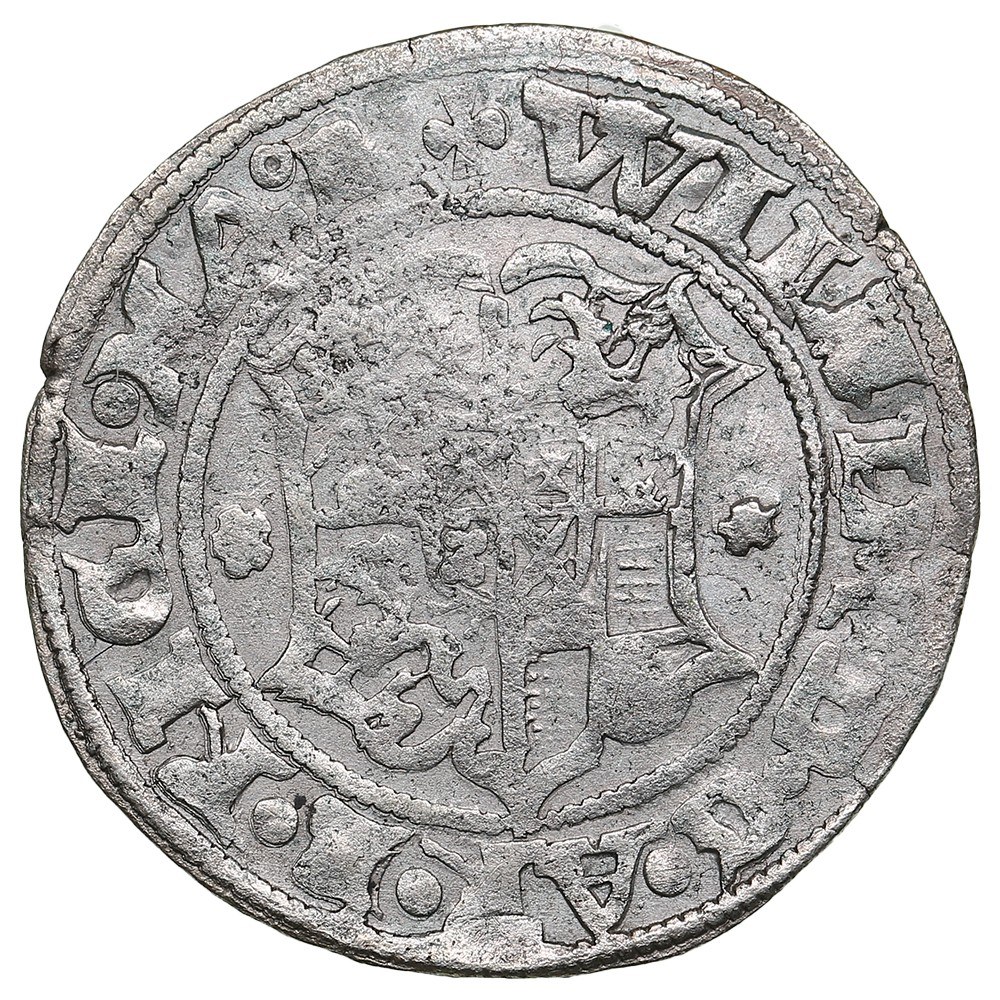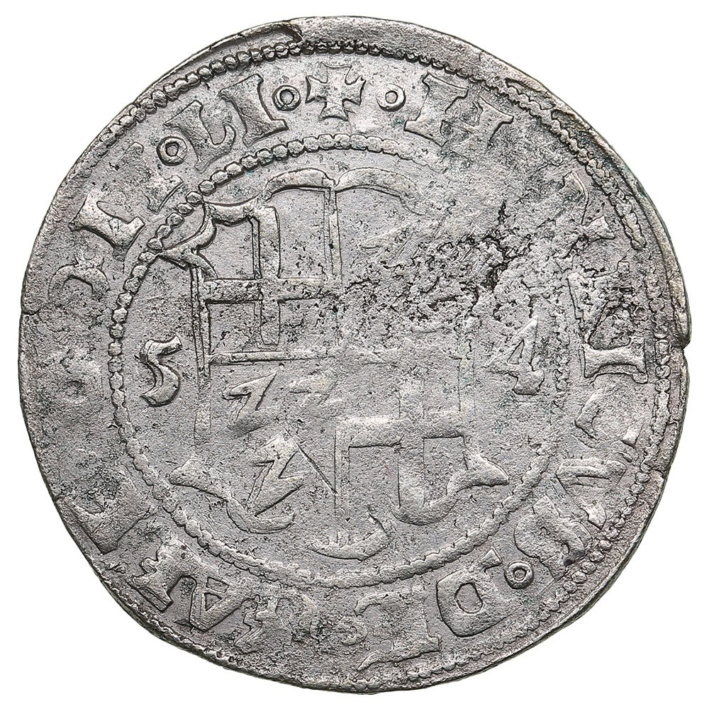 2.38g. VF+/VF-. Obv.: Coat of arms of Wilhelm von Brandenburg; “+WILHELM•D•G•AR•B•RIGE•MA°B”. Rev.: Coat of arms of Heinrich von Galen divides date (15)5-4; “+°HINRICVS°DE°GALE°D°O°M°LI°”. Haljak 430 R. Rare! Joint coinage between the Archbishopric of Riga and the Livonian Order. Issue historically associated with present-day Latvia.