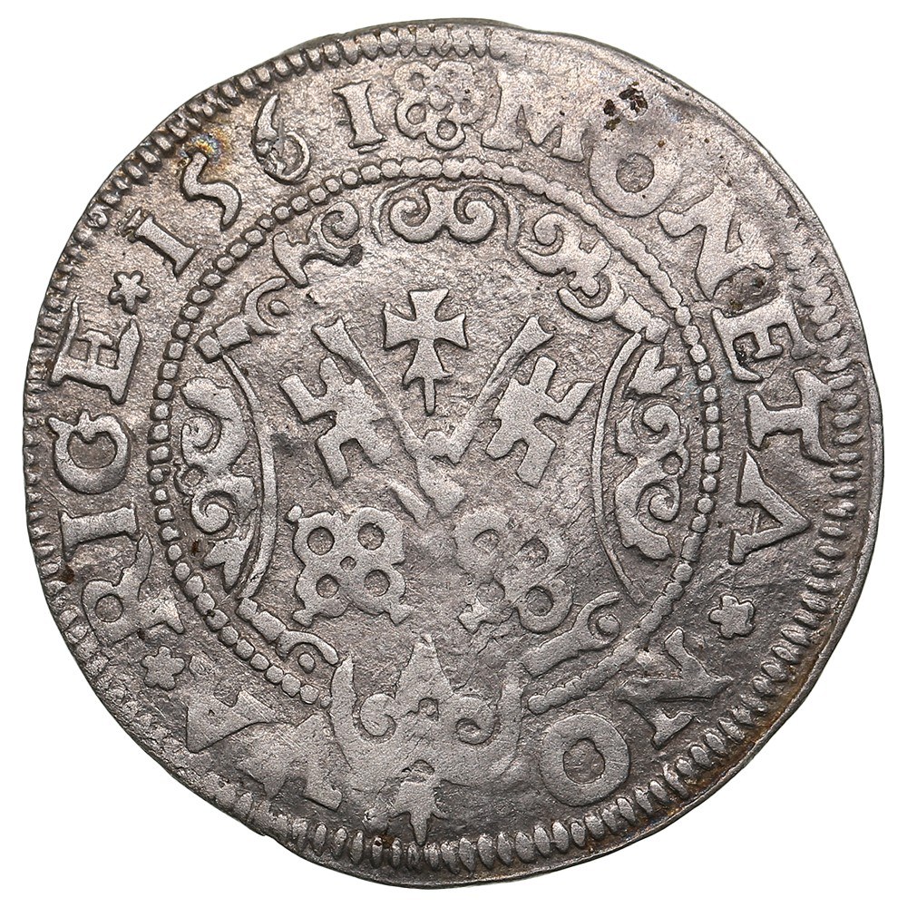 Rev.: Riga arms in ornamented shield; “*MONETA*NO-VA*RIGE*I56I”.