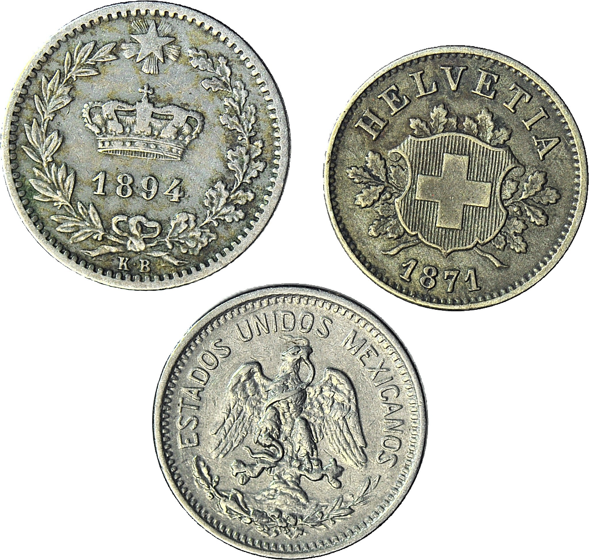 Mix świat, Włochy 1894, Szwajcaria 1871 i Meksyk 1906, zestaw 3 szt.