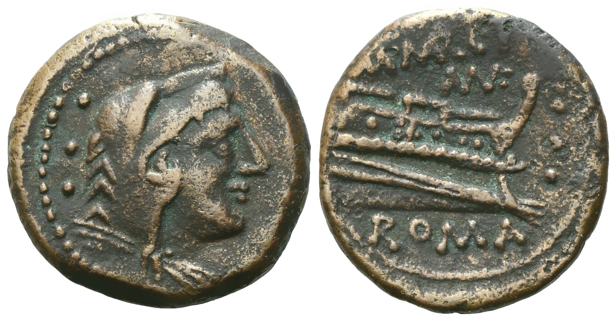 M. Marcius, Quadrans, 134 BC; Æ (4,51 g; 19,4 mm; 9 h)