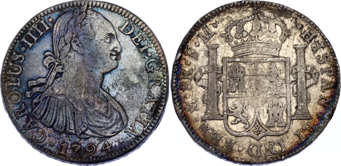 KM# 109; Silver; Carlos IV; XF with nice toning
