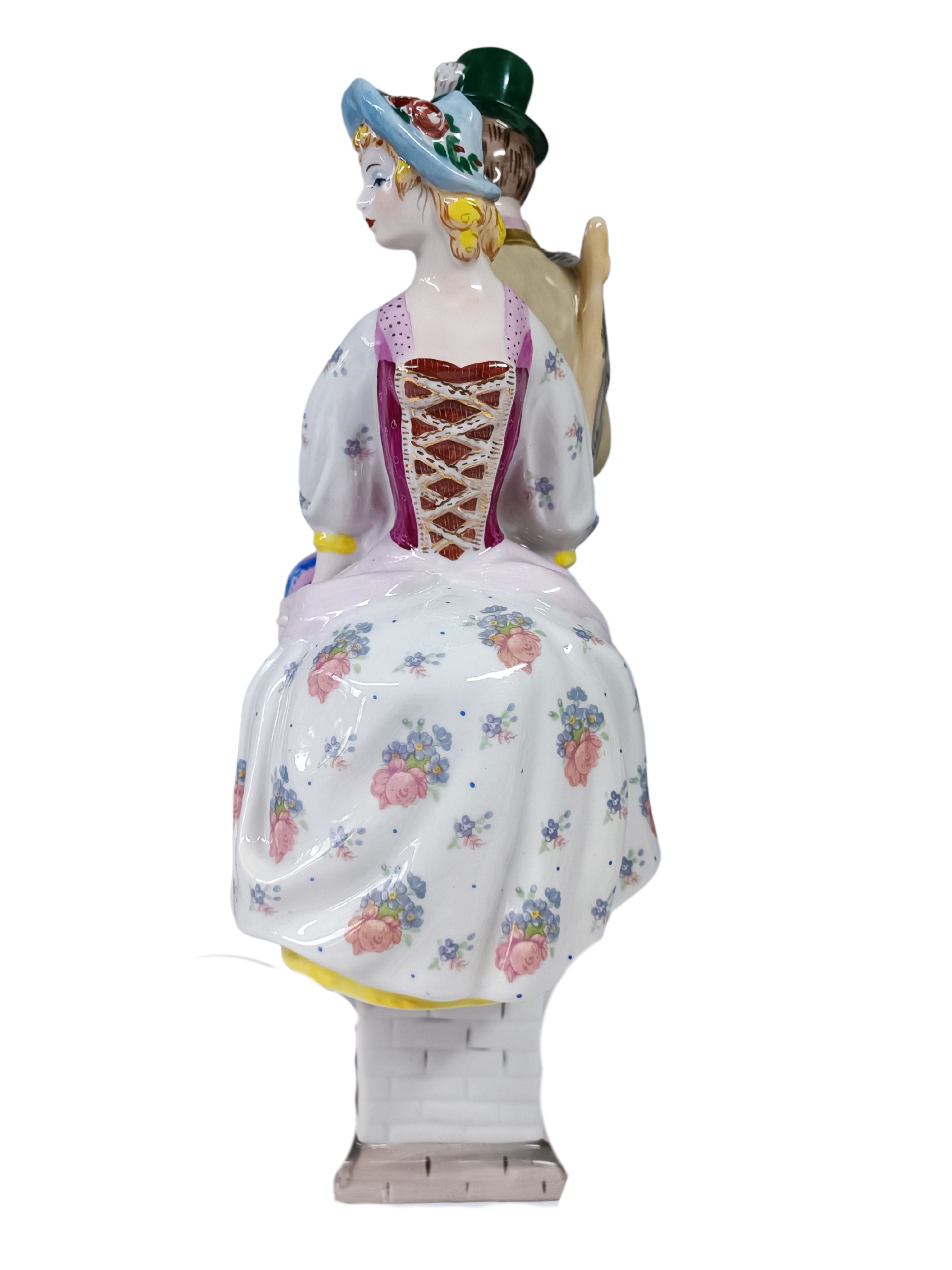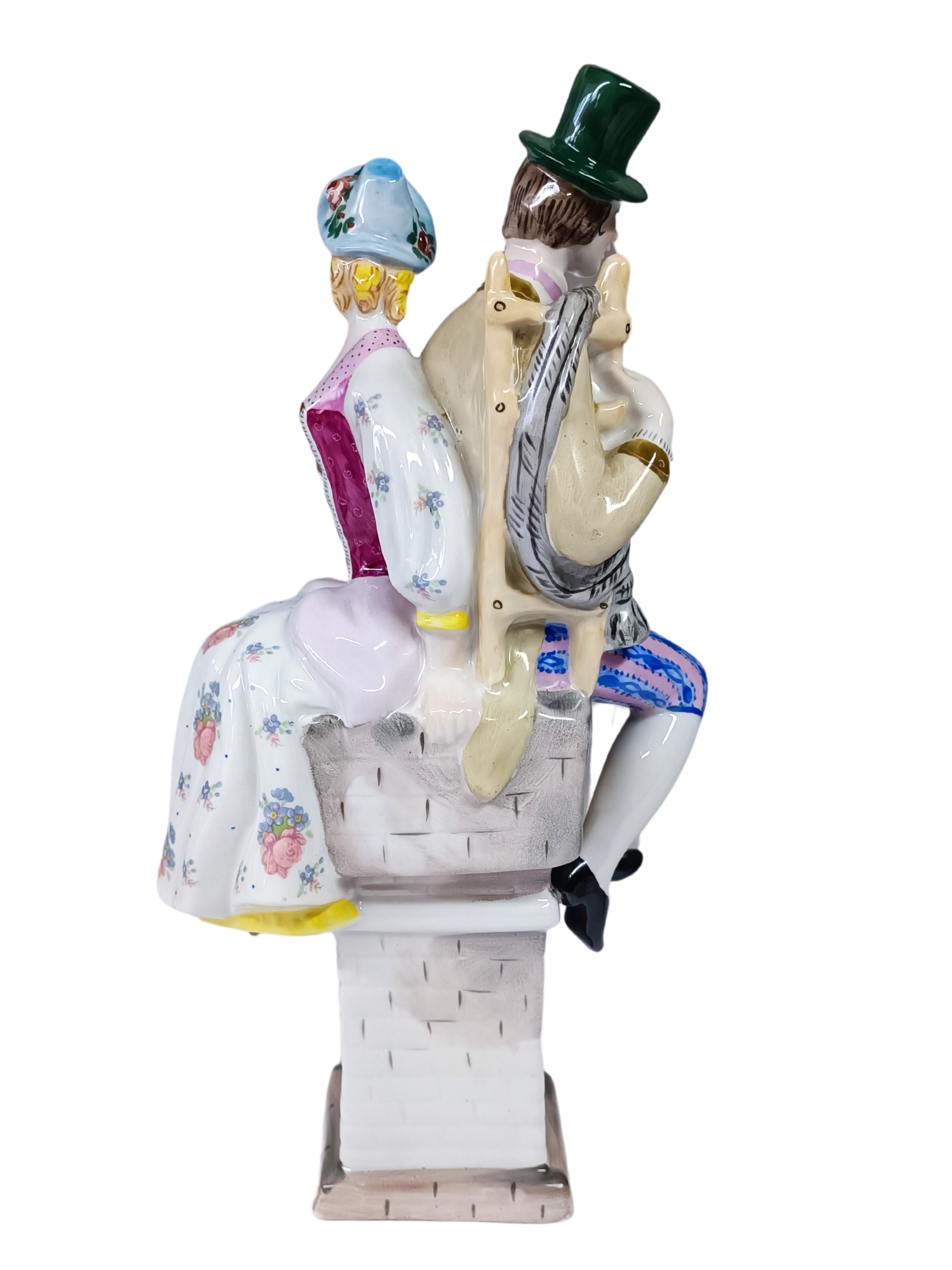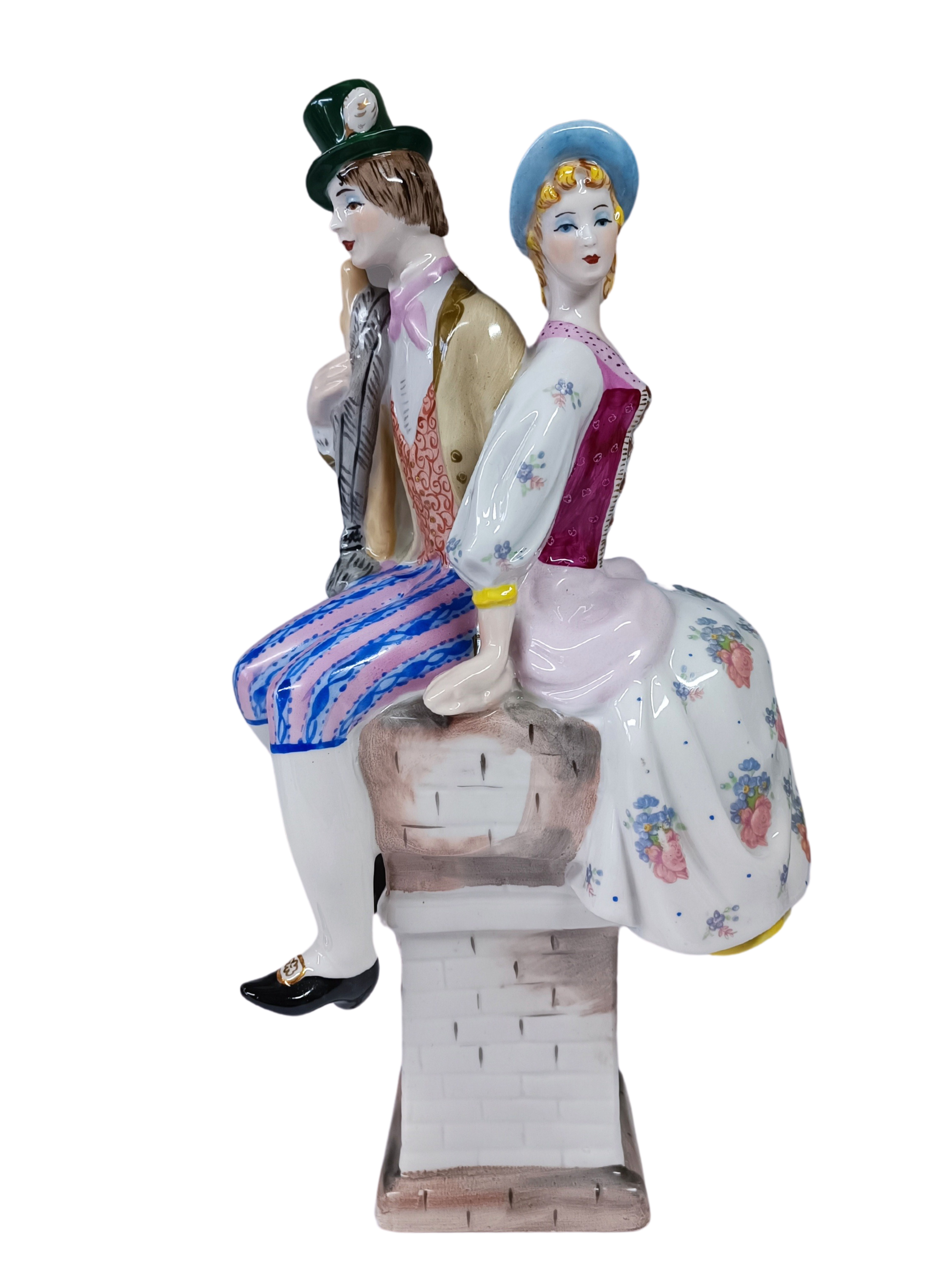 Porcelanowa, ręcznie malowana figurka, przedstawiająca pasterkę i kominarczyka, inspirowana baśnią Hansa Christiana Andersena o tym samym tytule.