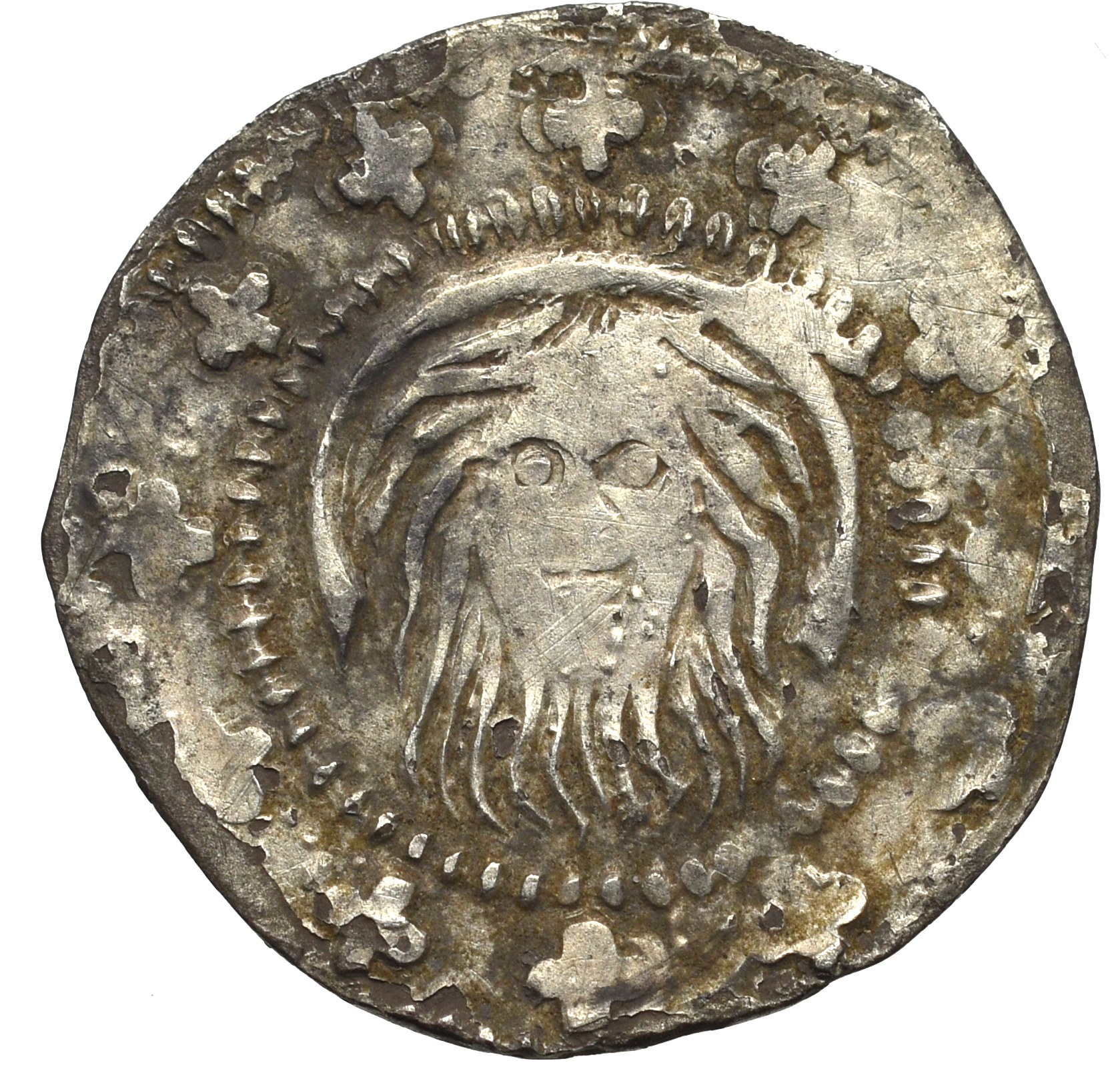 Awers: głowa na wprost w otoku z perełek, na zewnątrz otok z krzyżyków