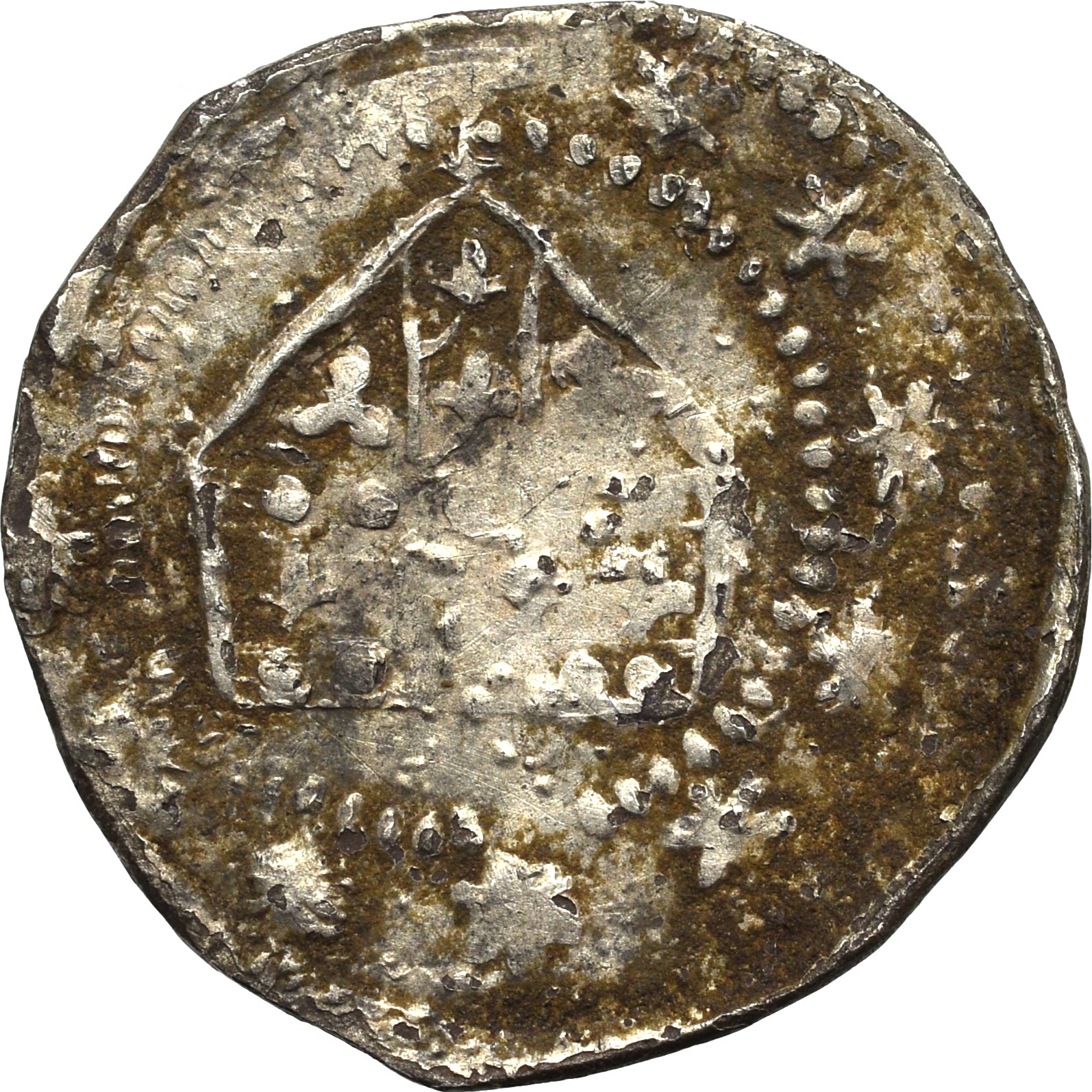 Rewers: infuła w otoku z perełek, na zewnątrz otok z gwiazdek