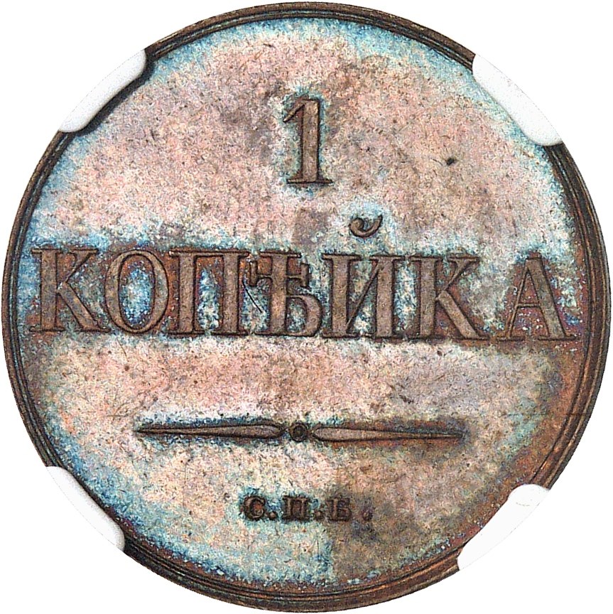 Nicolas Ier (1825-1855). Essai de 1 kopeck Novodel, Flan bruni (PROOF) 1830, СПБ, Saint-Pétersbourg. NGC PF 63 BN (4786699-019).