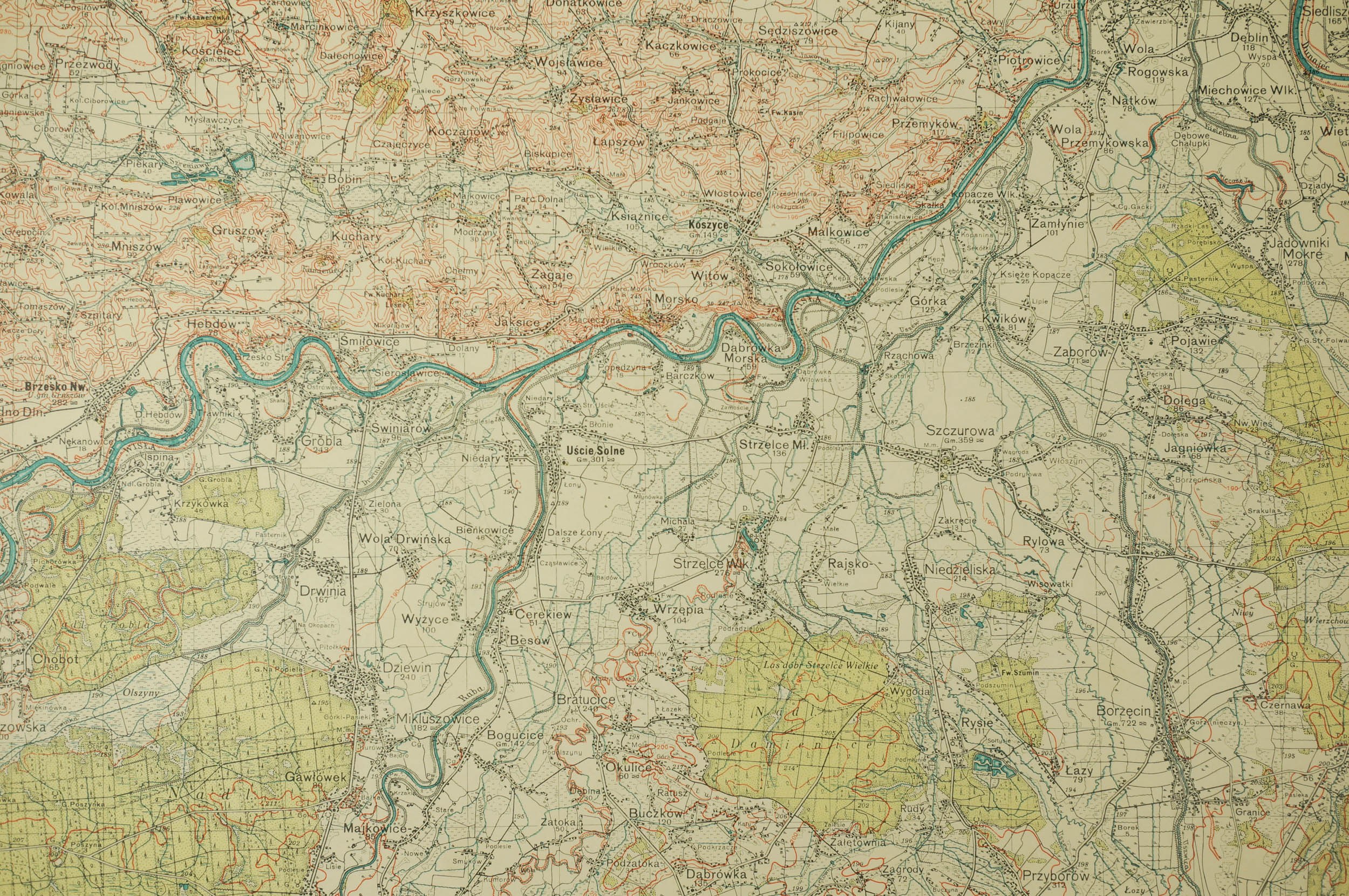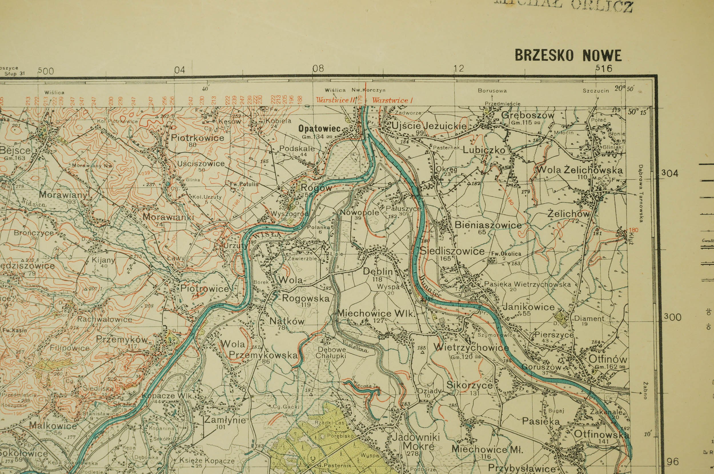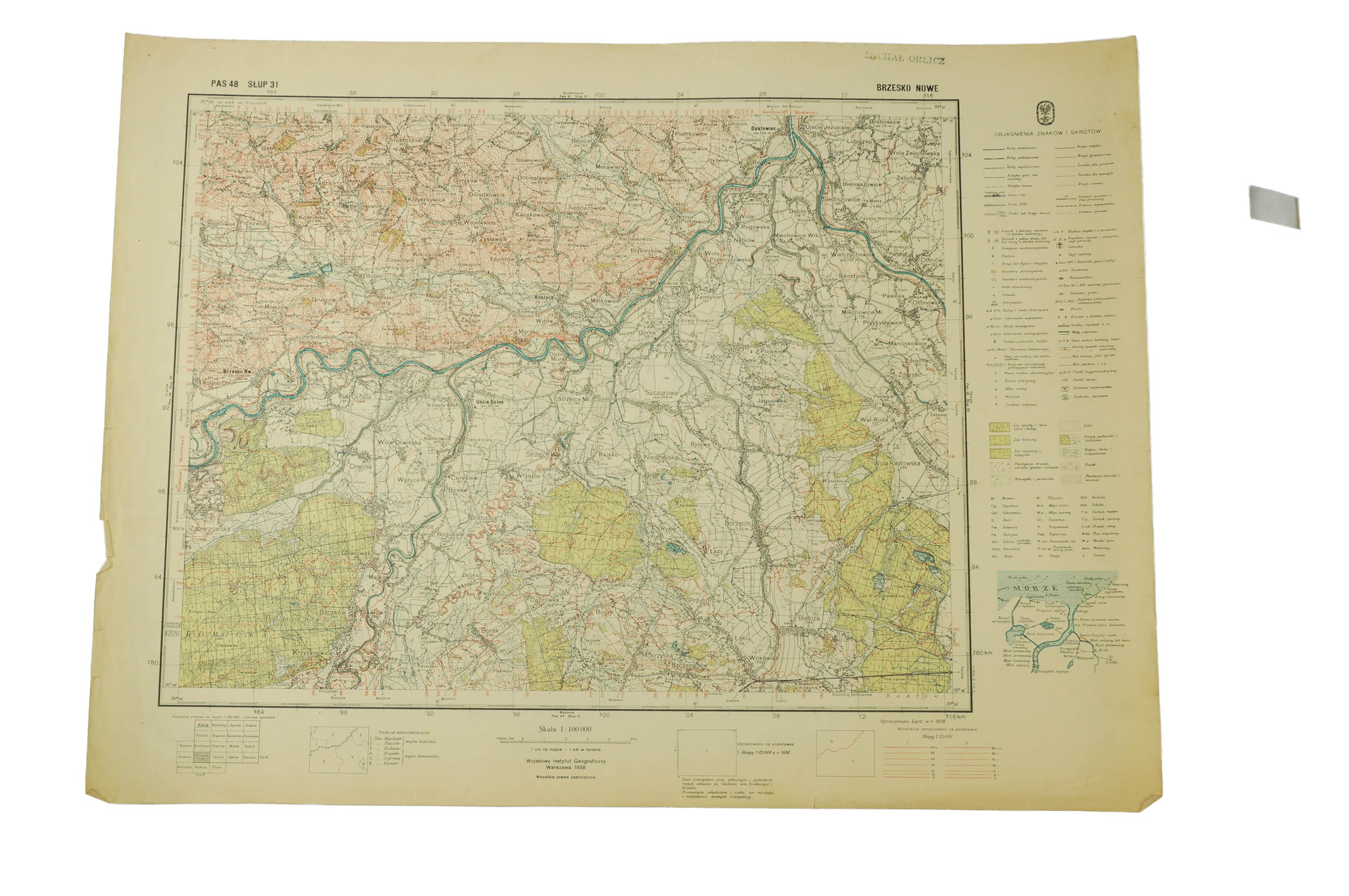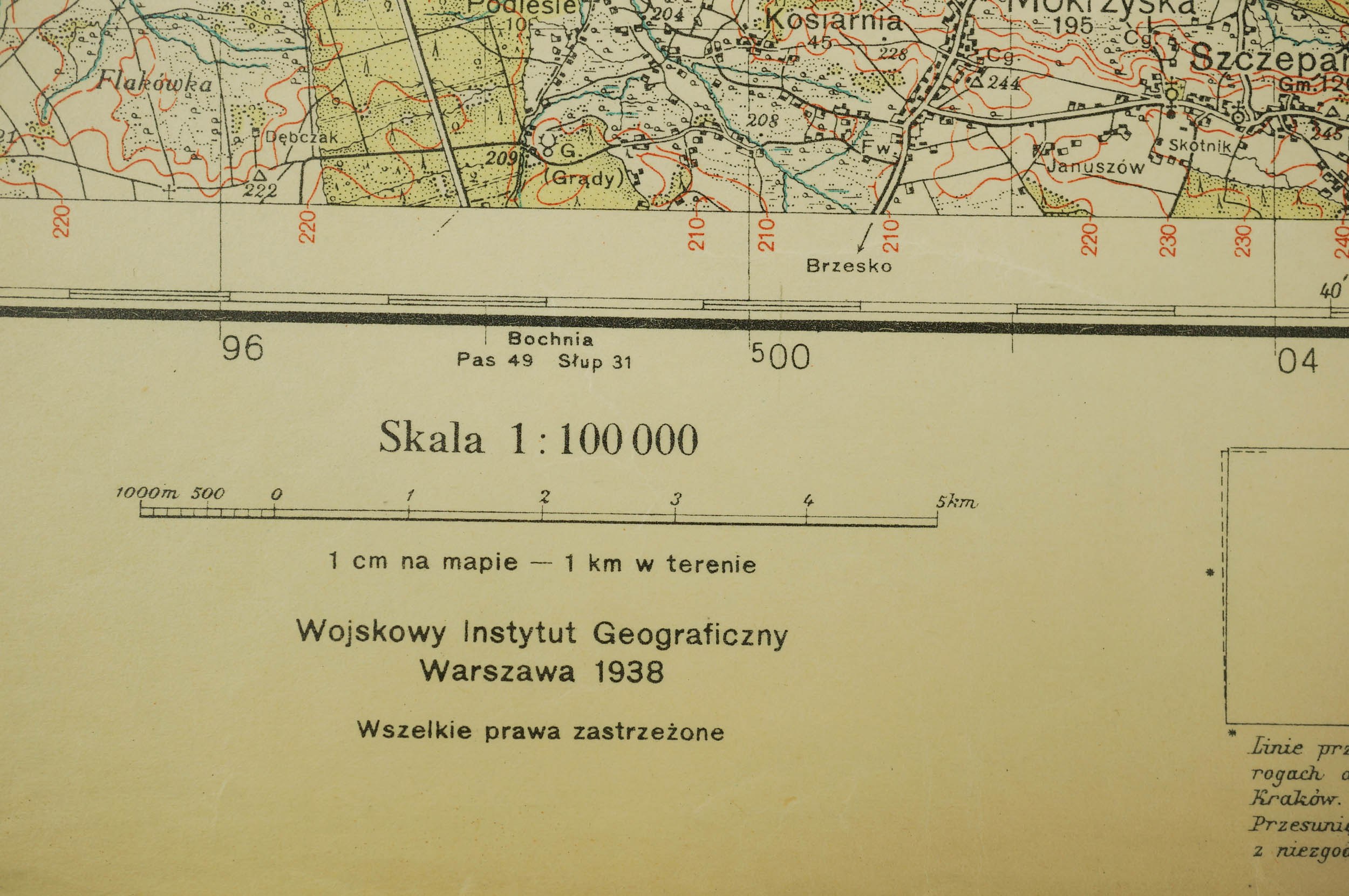 Brzesko Nowe PAS 48, SŁUP 31 - mapa WIG [Wojskowy Instytut Geograficzny] II RP, Warszawa 1938r., skala 1: 100.000, kolor, f. 49x37cm