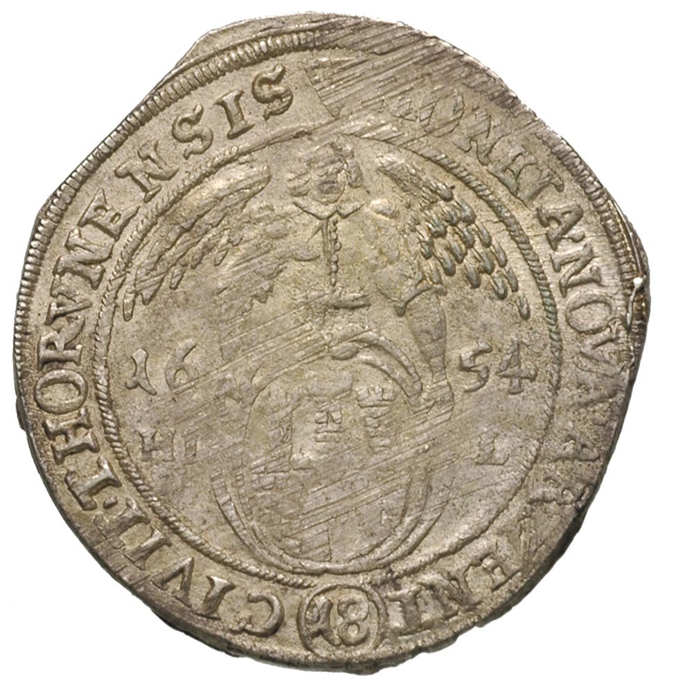 Jan II Kazimierz 1649-1668, ort 1654, Toruń, T. 5, mennicze wady krążka, ale dużo lustra menniczego, ładny i rzadki
